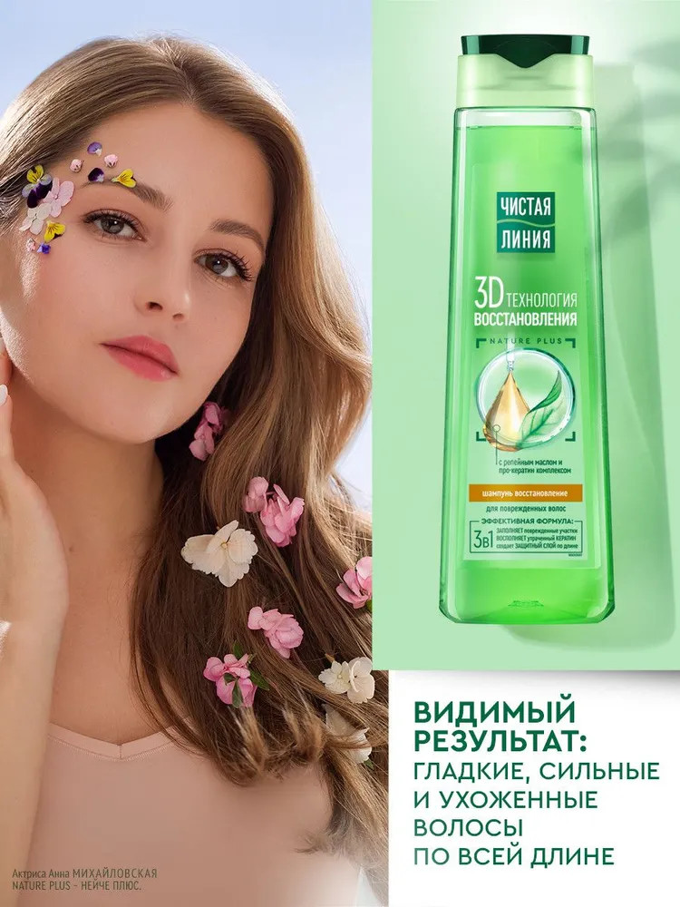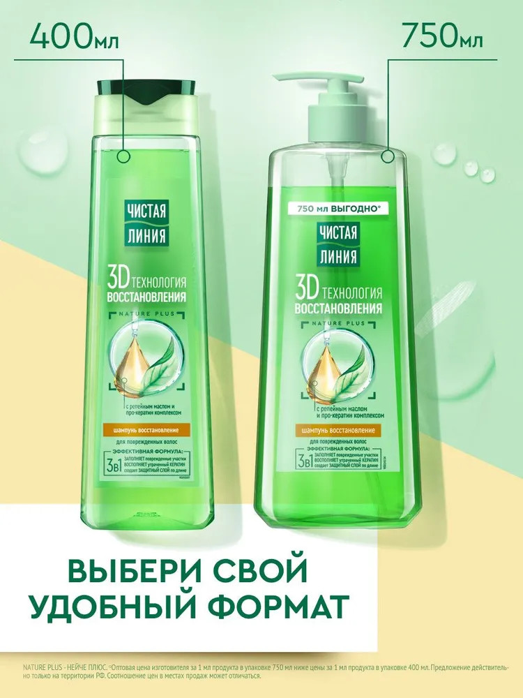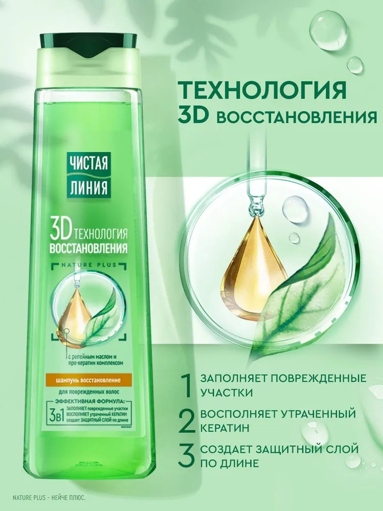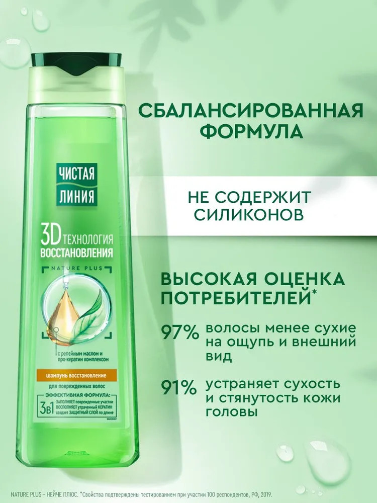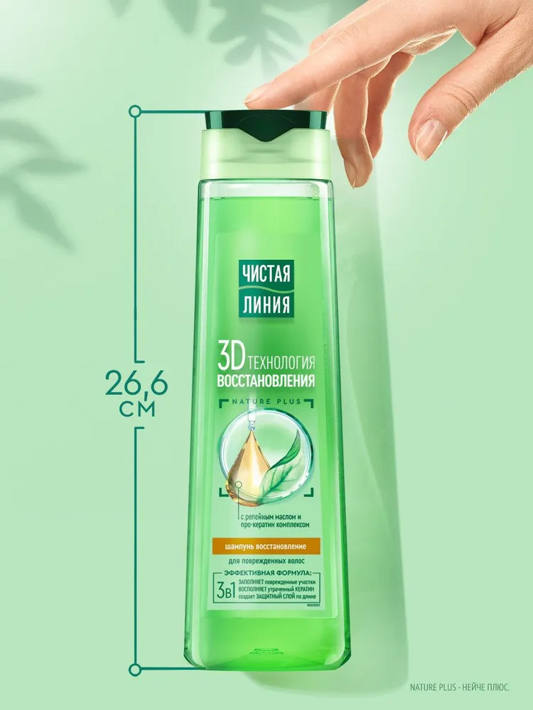 Чистая линия Шампунь для поврежденных волос с репейным маслом и про-кератин комплексом «Восстанавливающий»