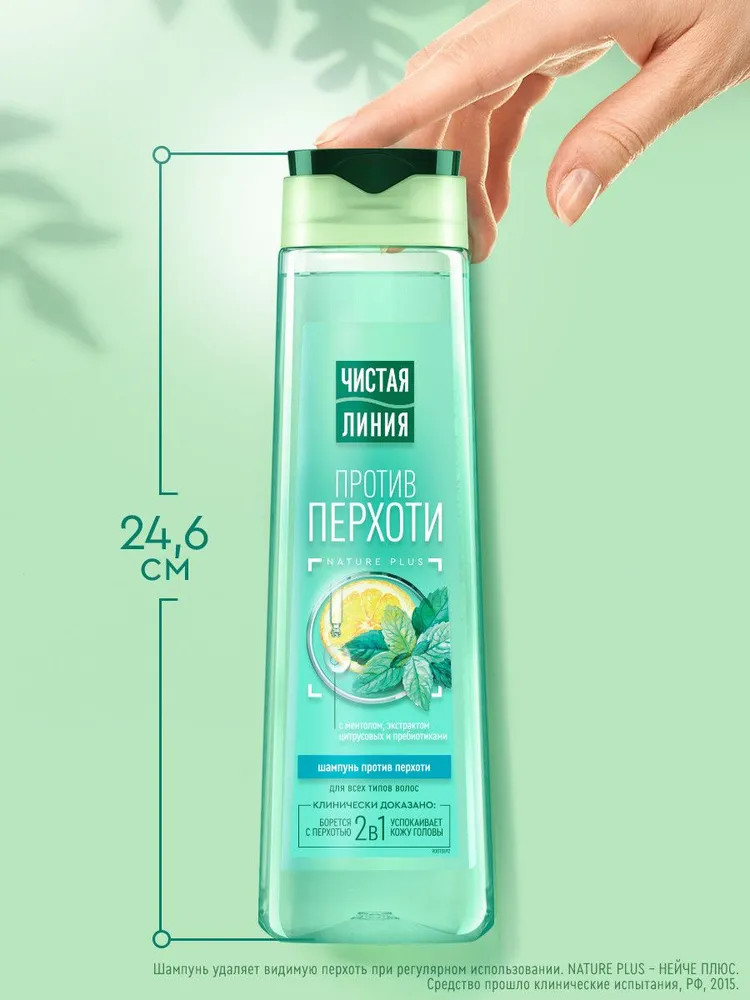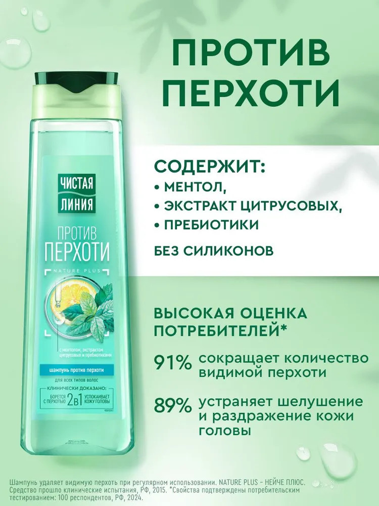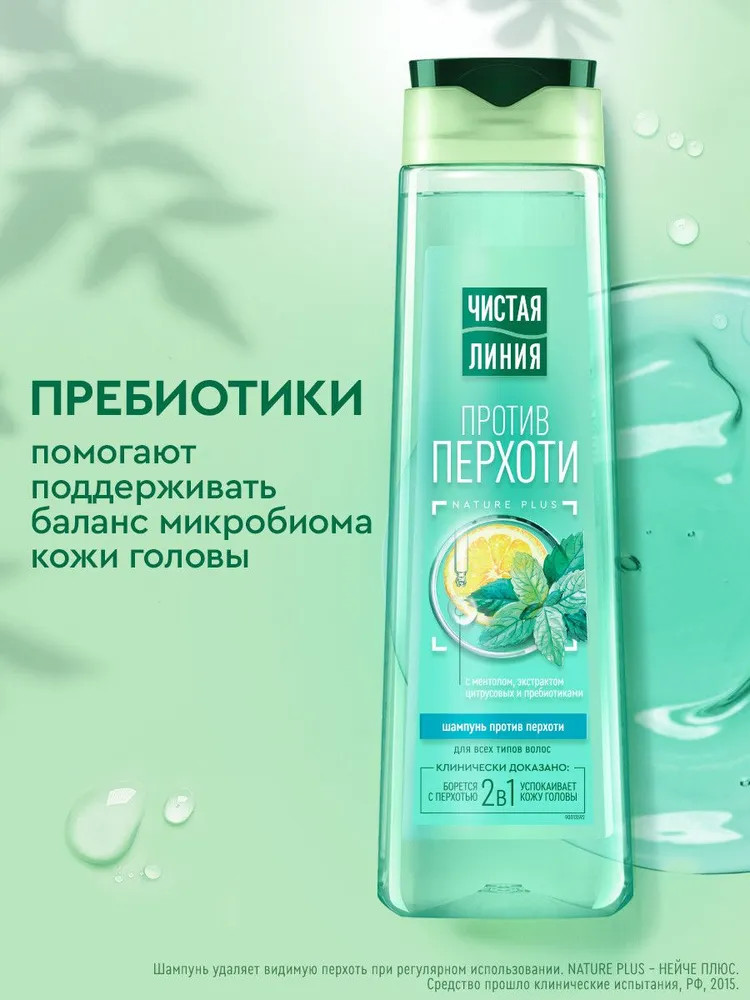 Чистая линия Шампунь против перхоти с ментолом, экстрактом цитрусовых и пребиотиками