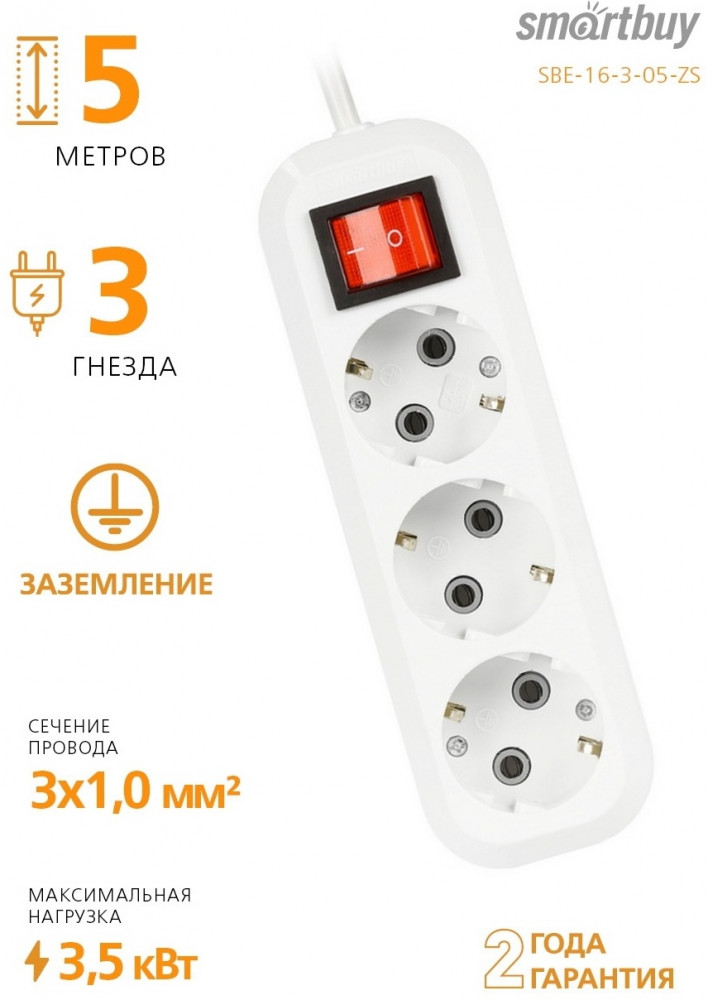 Smartbuy Удлинитель SBE-16-3-05-ZS