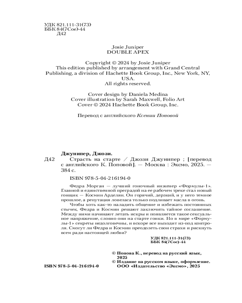 💳 Оплатить за товар можно при получении 🇰🇿 Есть бесплатная доставка по Казахстану 🎁 Копите бонусы с каждой покупки Серия: Cupcake. Формула один Федра Морган — лучший гоночный инженер «Формулы-1». Главной и единственной преградой на ее рабочем треке стал новый гонщик — Космин Арделян. Он горячий, дерзкий, и у него темное прошлое, а репутация ловеласа только подливает масла в огонь. Чтобы хоть как-то наладить общение и избежать постоянных стычек, Федра и Космин решают заключить тайное соглашение. Между ними начинают летать искры и появляется такое сексуальное напряжение, словно они на старте гонки. Но в мире «Формулы-1» секреты недолговечны, и вскоре все выходит из-под контроля. Смогут ли Федра и Космин преодолеть свои страхи и рискнуть всем ради настоящей любви? |