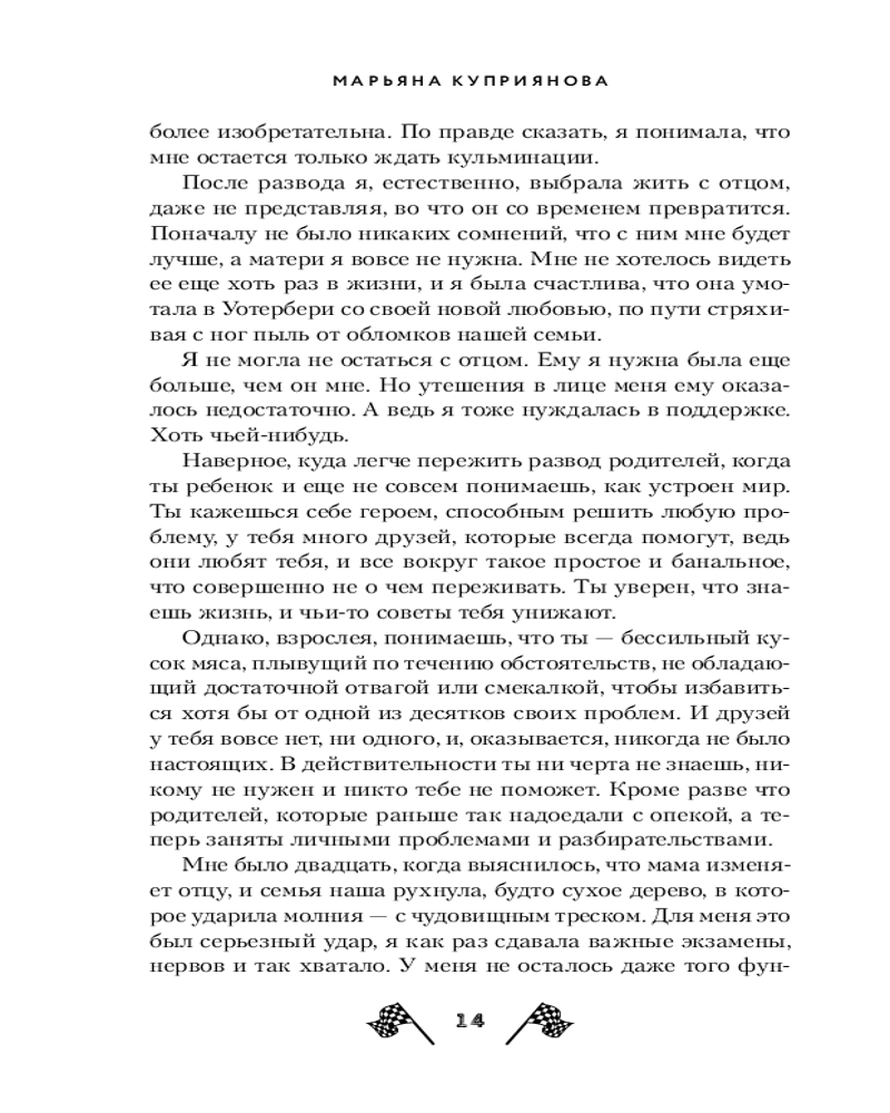 💳 Оплатить за товар можно при получении 🇰🇿 Есть бесплатная доставка по Казахстану от 1 дня 🎁 Копите бонусы с каждой покупки Серия: Young Adult. Опасные игры Я злилась на себя, не веря, что мое сердце выбрало такого неподходящего человека, чтобы так сильно полюбить. Ради собственной безопасности Сара Фрай переезжает к матери, которую ненавидит, и отчиму, который ненавидит ее. Уотербери совсем не похож на то место, где она прожила всю жизнь, но здесь ей хочется стать своей. Когда отчим начинает угрожать побоями, а мать ничего не замечает, Сара сбегает из ненавистного дома, устраивается на две работы, чтобы выжить, и ночует в тату-салоне. Благодаря новым друзьям девушка попадает на автодром под названием Гранж Пул Драйв, где впервые видит местную знаменитость — Гектора Соулрайда. Лучший пилот, любимец публики и пылкий сердцеед не готов смириться с полным равнодушием новенькой, которой хватает своих проблем. Вопрос в том, готов ли Гектор к взаимности? |