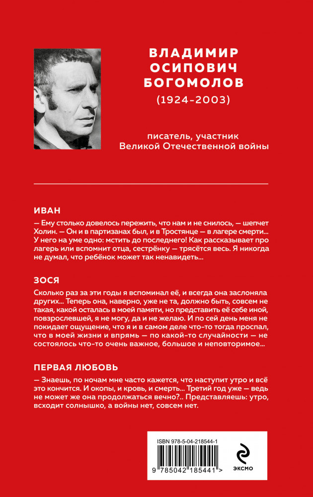 Богомолов Владимир Осипович родился в деревне Кирилловка Московской области советский писатель. Выпускник отделения журналистики Высшей партийной школы (1958г). Никогда не состоял в Союзе писателей. |