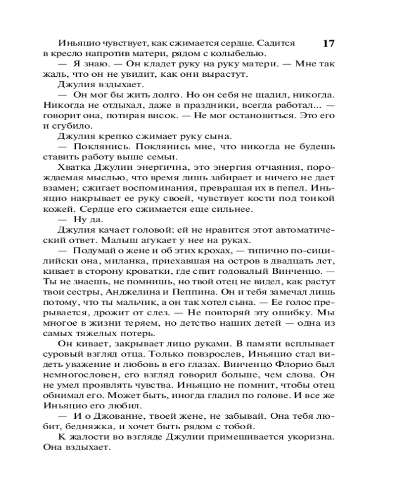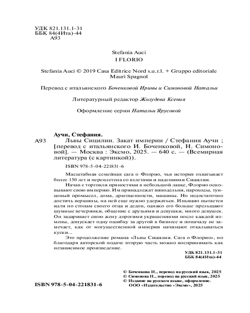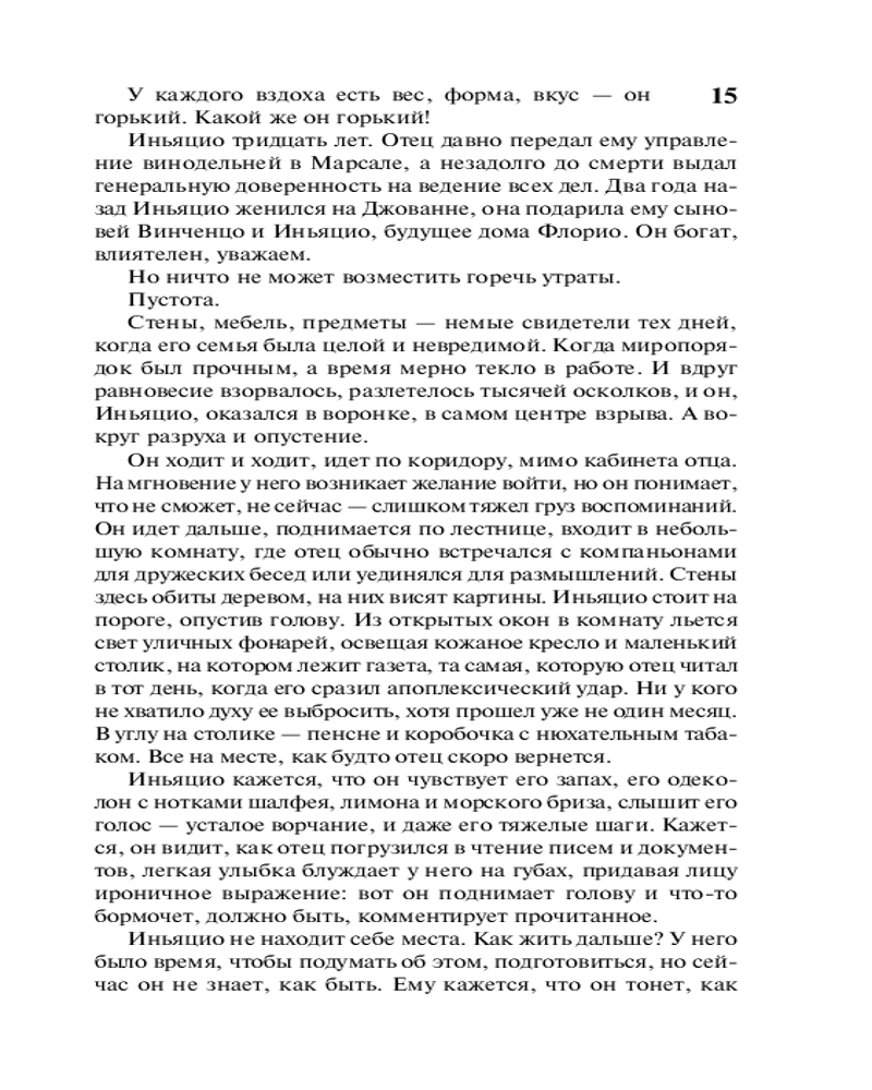 Серия: Всемирная литература (новое оформление) Начав с торговли пряностями в небольшой лавке, Флорио основывают свою империю. Им принадлежат винодельни, пароходы, тунцовый промысел, дома, драгоценности, машины. Но недостаточно достичь вершины, на ней еще нужно удержаться. Иньяцио пытается идти по стопам своего отца и дедов, однако его больше прельщают шумные вечеринки, общение с друзьями и девушки, много девушек. Он задаривает свою жену дорогими украшениями после каждой измены, допускает одну ошибку за другой в бизнесе и поначалу не замечает, как от могущественной империи начинают откалываться куски... |