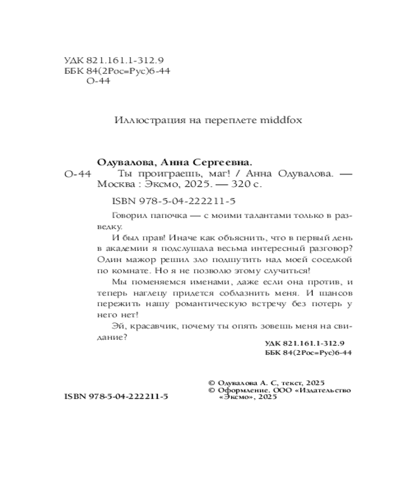💳 Оплатить за товар можно при получении 🇰🇿 Есть бесплатная доставка по Казахстану от 1 дня 🎁 Копите бонусы с каждой покупки Серия: По следам литмоба Говорил папочка — с моими талантами только в разведку. И был прав! Иначе как объяснить, что в первый день в академии я подслушала весьма интересный разговор? Один мажор решил зло подшутить над моей соседкой по комнате. Но я не позволю этому случиться! Мы поменяемся именами, даже если она против, и теперь наглецу придется соблазнить меня. И шансов пережить нашу романтическую встречу без потерь у него нет! Эй, красавчик, почему ты опять зовешь меня на свидание? |