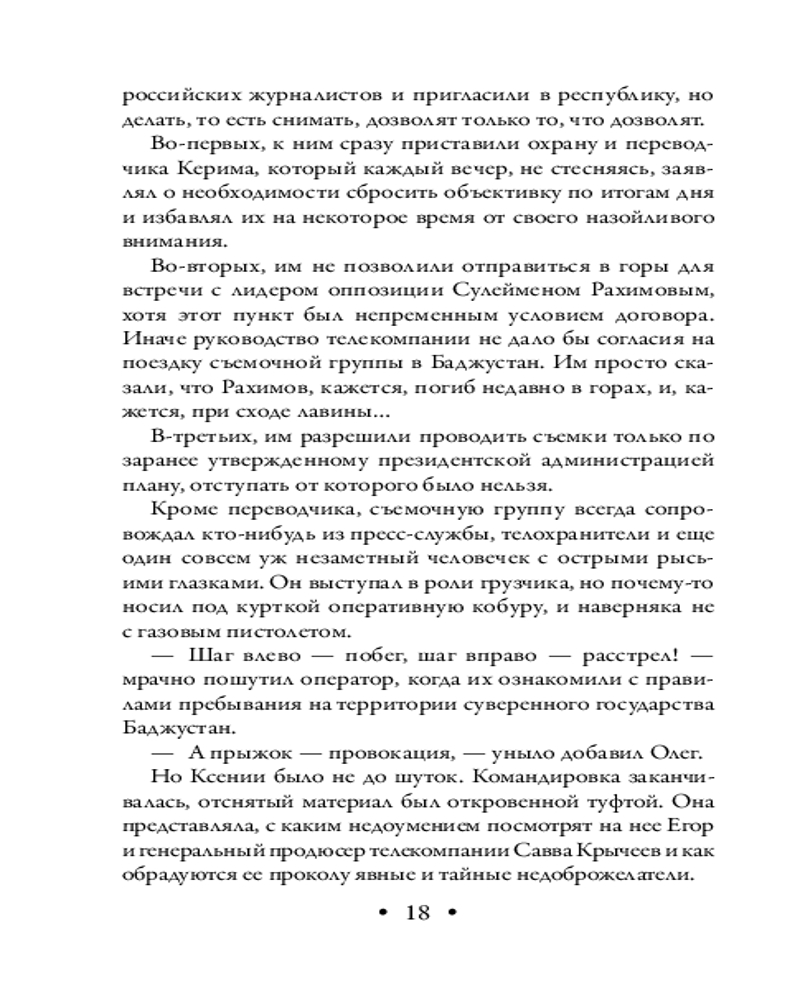 💳 Оплатить за товар можно при получении 🇰🇿 Есть бесплатная доставка по Казахстану от 1 дня 🎁 Копите бонусы с каждой покупки Серия: Любовь, интрига, тайна. Новое оформление (обложка) Телеведущая Ксения Остроумова приехала в небольшую азиатскую республику, чтобы собрать материал для своей новой передачи. Ей обещали встречу с президентом, но обманули. Поездка явно не задалась: передача не получилась, вылет в Москву отложили, ребята из ее группы как сквозь землю провалились... Бывший разведчик Максим Богуш только что установил охранную систему в президентском дворце и понимал — ему будет непросто покинуть республику, ведь он слишком много знает. Вечером в баре гостиницы он увидел потрясающе красивую женщину. Они ушли вместе и провели незабываемую ночь. Но утром незнакомка исчезла, так и не назвав Максиму своего имени... |
