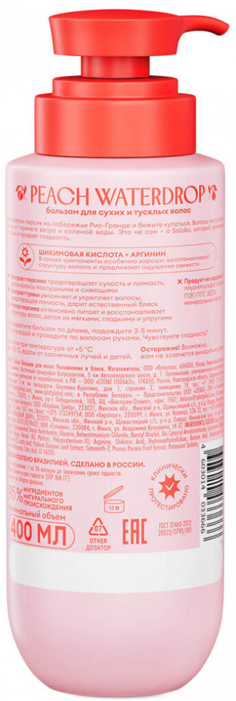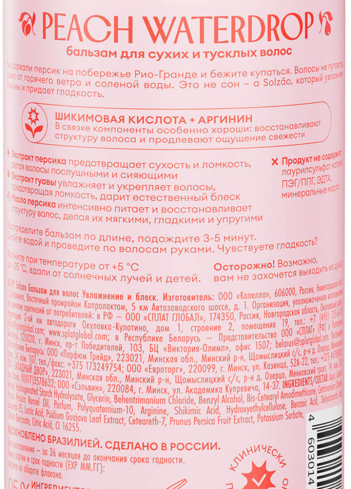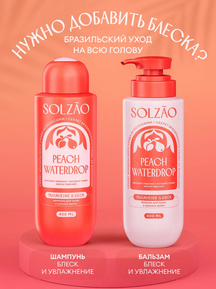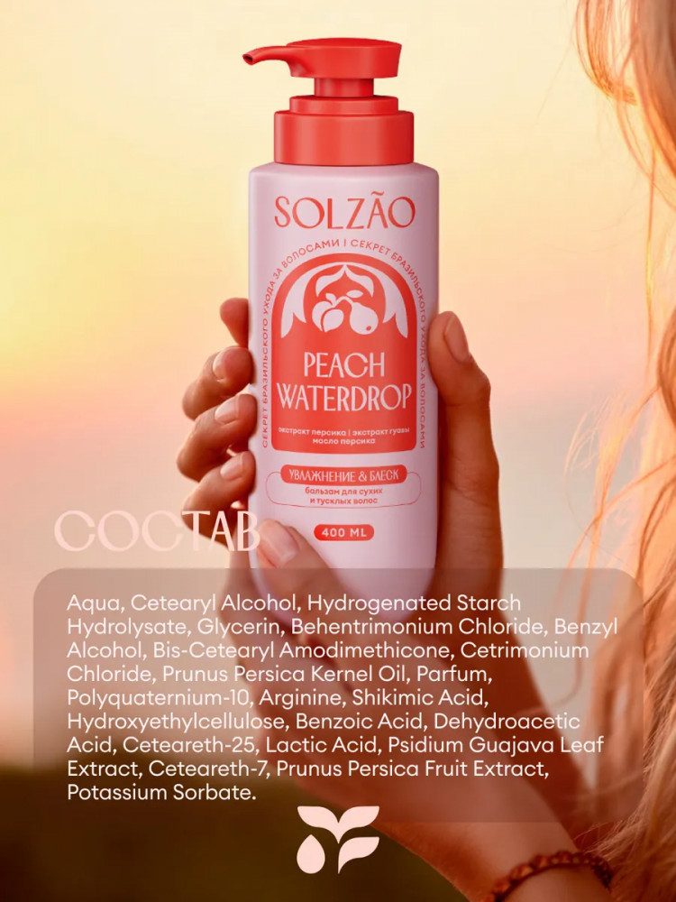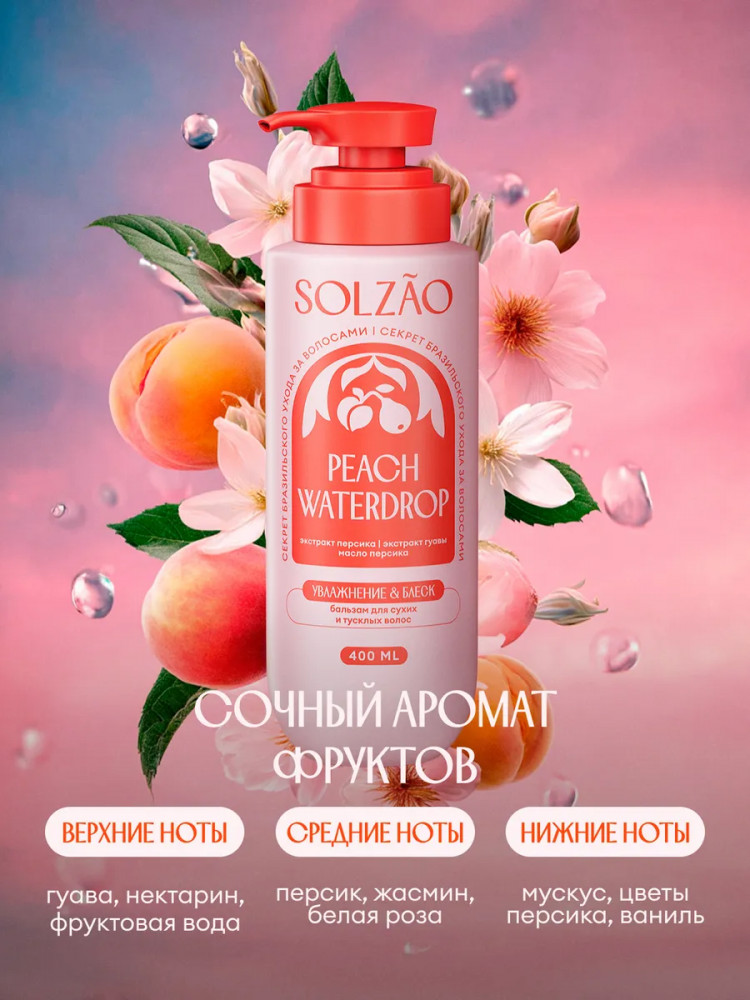 Solzao Бальзам для сухихи и тусклых волос Peach Waterdrop «Увлажнение и блеск»