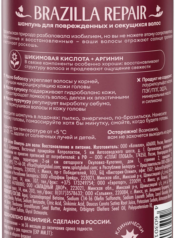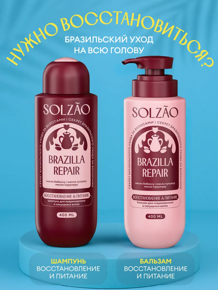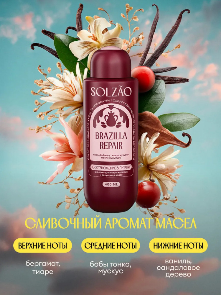 Solzao Шампунь для поврежденных и секущихся волос Brazilla Repair «Восстановление и питание»