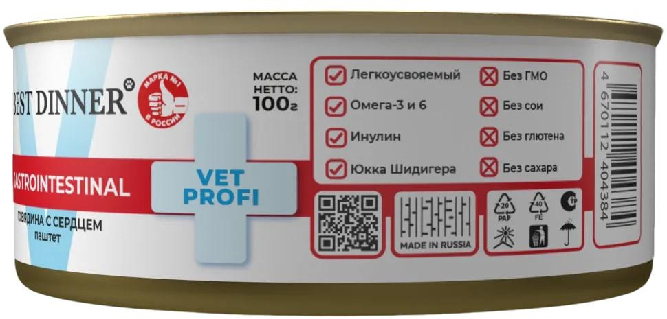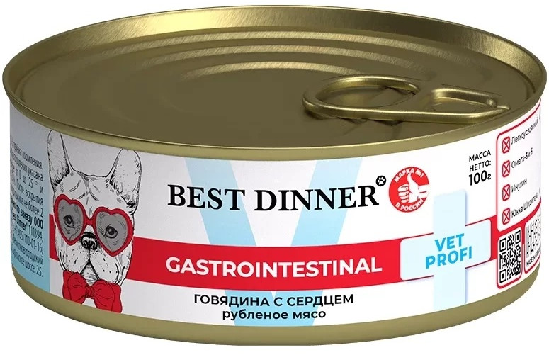 Best Dinner Корм для собак консервированный с говядиной и сердцем «Gastrointestinal»
