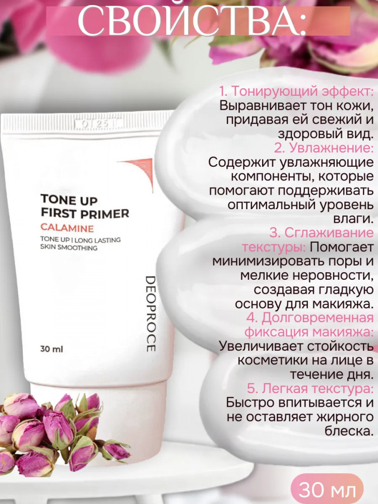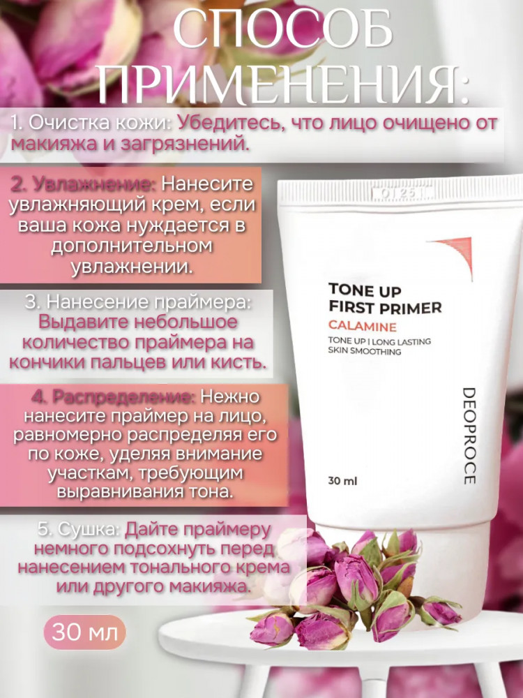 💳 Оплатить за товар можно при получении 🇰🇿 Есть бесплатная доставка по Казахстану 🎁 Копите бонусы с каждой покупки Тонирующий праймер Tone Up First Primer от косметического бренда Deoproce идеально подходит для регулярного ухода за тусклой кожей и решения проблем с пигментацией. Средство с легкой консистенцией выравнивает тон и микрорельеф, создает основу для создания макияжа и повышает его стойкость. |