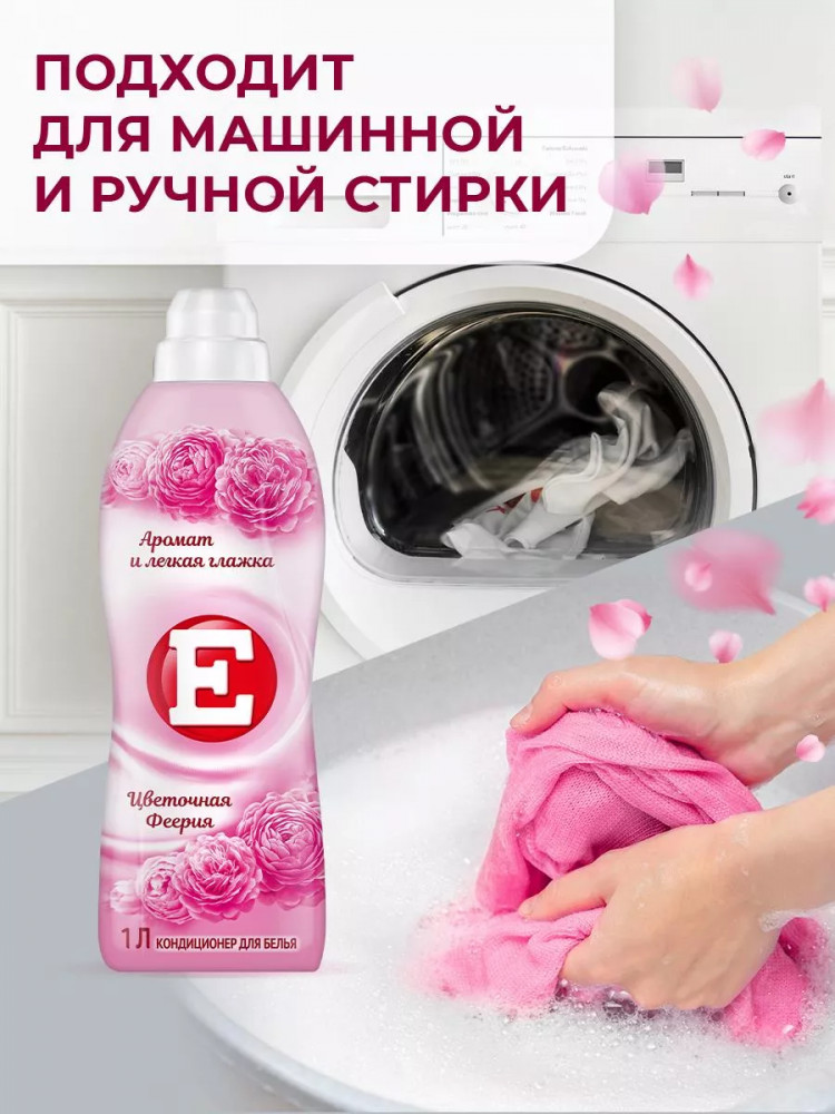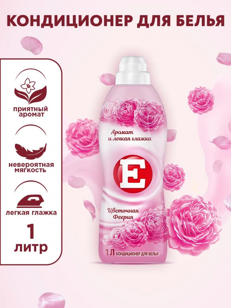 Кондиционеры для белья «Е» окружают нежностью, приятным ароматом и придают белью удивительную мягкость. «Е» завоевал доверие потребителей благодаря легким и приятным ароматам, подходящим для всей семьи, и удивительной мягкости, которую он дарит белью.