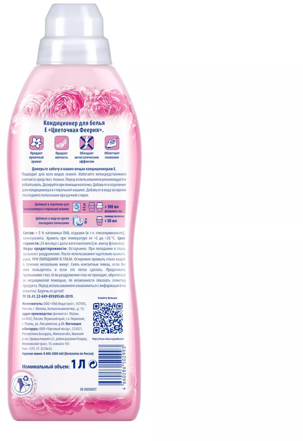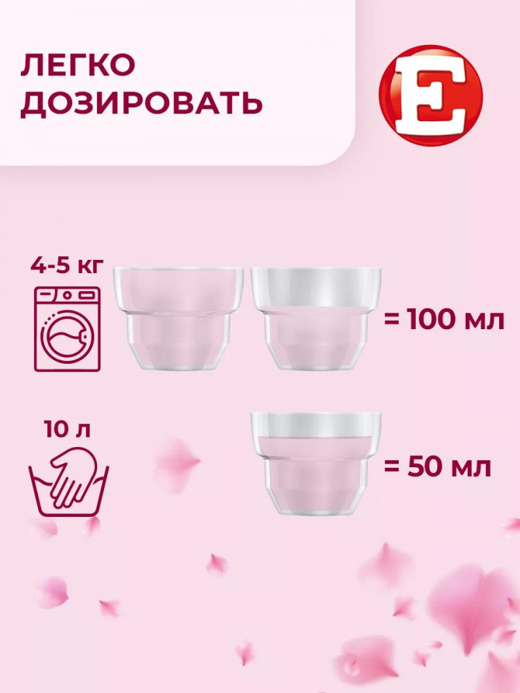 Кондиционер для белья E бережно и деликатно ухаживает за любой одеждой. Благодаря современной формуле из катионных ПАВ и глицерина кондиционер обладает эффективными преимуществами: