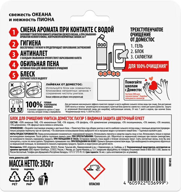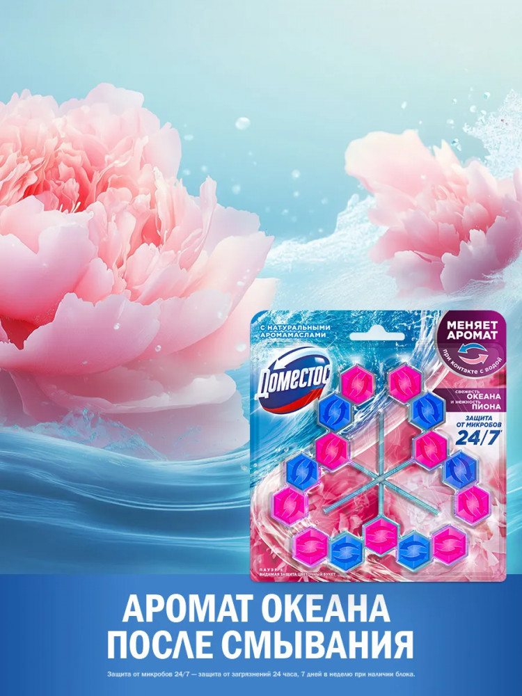 Domestos Набор блоков для очищения унитаза «Свежесть океана и нежность пиона»