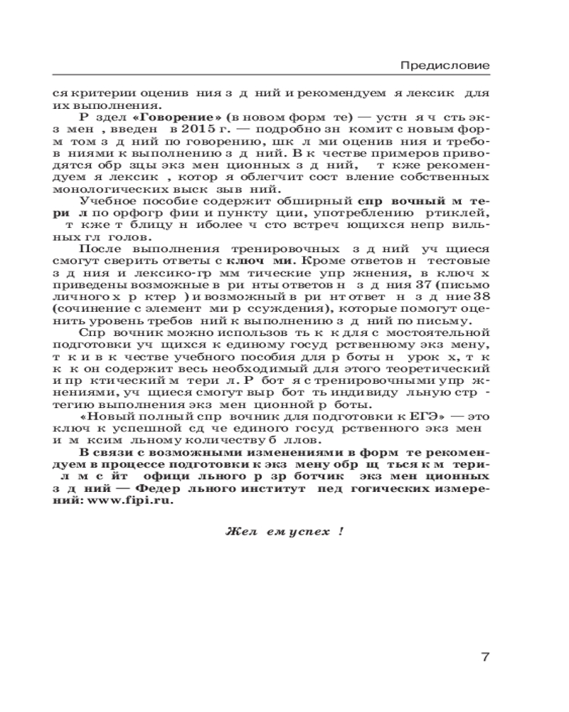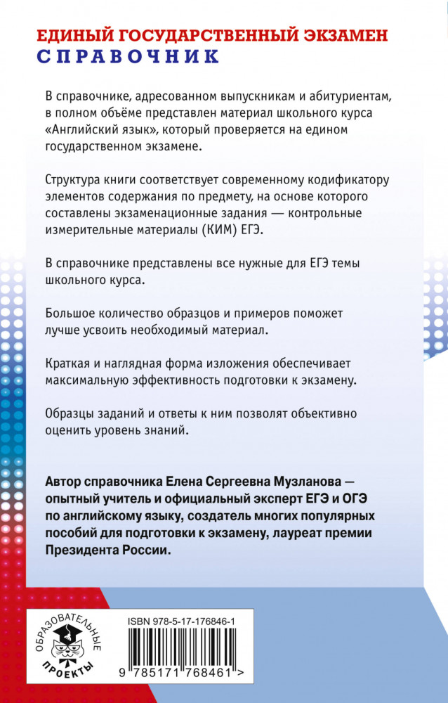 ЕГЭ. Английский язык. Новый полный справочник для подготовки к ЕГЭВ данный момент этот товар отсутствует в продаже. Возможно, у нас найдется аналогичный или похожий товар здесь. Серия: Самый популярный справочник для подготовки к ЕГЭ Справочник призван оказать практическую помощь в подготовке учащихся 11 классов и абитуриентов к единому государственному экзамену по английскому языку. Пособие составлено по тематическому принципу и содержит 8 разделов, которые включают справочную информацию по структуре ЕГЭ по английскому языку, материалы ко всем разделам экзамена («Аудирование», «Чтение», «Грамматика и лексика», «Письмо» и «Говорение»), справочную лексико-грамматическую информацию, а также полный экзаменационный вариант ЕГЭ с комментариями к решению заданий. В каждый раздел ЕГЭ включены рекомендации по его выполнению, необходимый теоретический материал и образцы заданий экзаменационного типа, что позволит учащимся успешно подготовиться к экзамену. |