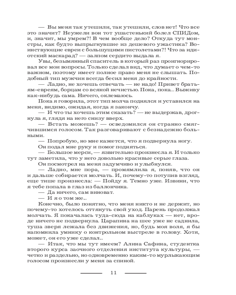 💳 Оплатить за товар можно при получении 🇰🇿 Есть бесплатная доставка по Казахстану от 1 дня 🎁 Копите бонусы с каждой покупки Серия: Коллекция. Другие миры Поздний вечер. Тихий провинциальный город. Алина Сафина возвращается с занятий домой, уличный кот чешет за ухом, все привычно и предсказуемо. Как вдруг... из-за угла выпрыгивает двухметровый зубастый монстр! Грязные когти тянутся к горлу онемевшей от ужаса девушки, и в этот момент кот бросается на ее защиту, а тишину вечерних сумерек разрывают выстрелы! Ужасная тварь с черной глянцевой шкурой и полуметровыми зубами повержена! Молодой парень с пистолетом в руке помогает Алине встать. |