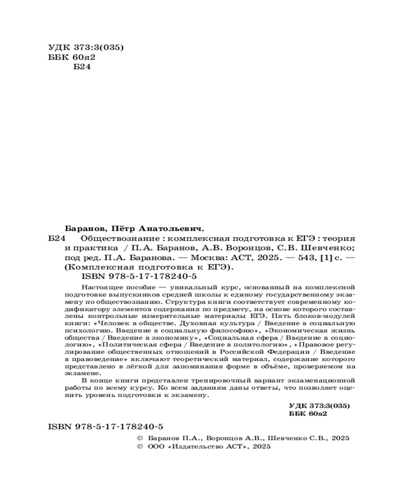 ЕГЭ. Обществознание. Комплексная подготовка к единому государственному экзамену. Теория и практикаСергей Владимирович Шевченко, Александр Викторович Воронцов, Петр Анатольевич Баранов -20% +88
