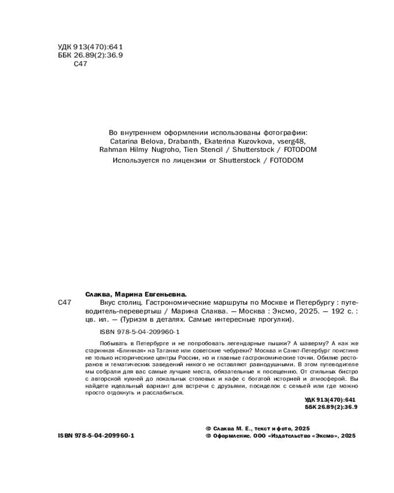 💳 Оплатить за товар можно при получении 🇰🇿 Есть бесплатная доставка по Казахстану от 1 дня 🎁 Копите бонусы с каждой покупки Серия: Туризм в деталях. Самые интересные прогулки «Вкус столиц» — это уникальная коллекция маршрутов, которая откроет перед вами вкуснейшие уголки Москвы и Санкт-Петербурга. В гиде собрано 11 тематических подборок, которые проведут вас по местам, где культура и кухня переплетаются в самых неожиданных формах. Каждое путешествие по столицам России — это не только дегустация лучших блюд, но и возможность ощутить атмосферу городов с их историей, традициями и современными трендами. |