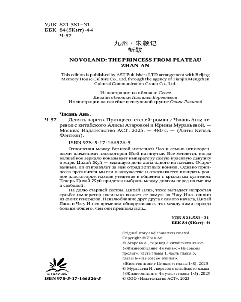 💳 Оплатить за товар можно при получении 🇰🇿 Есть бесплатная доставка по Казахстану от 1 дня 🎁 Копите бонусы с каждой покупки Серия: Хиты Китая. Фэнтези Отношения между Великой империей Чао и семью непокоренными племенами плоскогорья Ебэй натянутые. Все меняется, когда волшебное зеркало показывает императору самую красивую девушку в мире, Цихай Жуй — младшую дочь хана одного из племен. Очарованный, он отправляет за ней отряд элитных воинов. Однако принцесса противится мысли о замужестве и отказывается покидать родное плоскогорье, находя утешение в общении с крылатым кузнецом. Теперь Цихай Жуй придется выбрать между долгом перед племенем и свободой. На долю старшей сестры, Цихай Лянь, тоже выпадает непростая судьба: император насильно выдает ее замуж за Чжу Ина, одного из своих генералов. Невзлюбившие друг друга с самого начала, Цихай Лянь и Чжу Ин со временем обнаруживают, что между ними гораздо больше общего, чем они предполагали... Две истории о том, как власть может отнять любовь и... примирить два гордых сердца. |