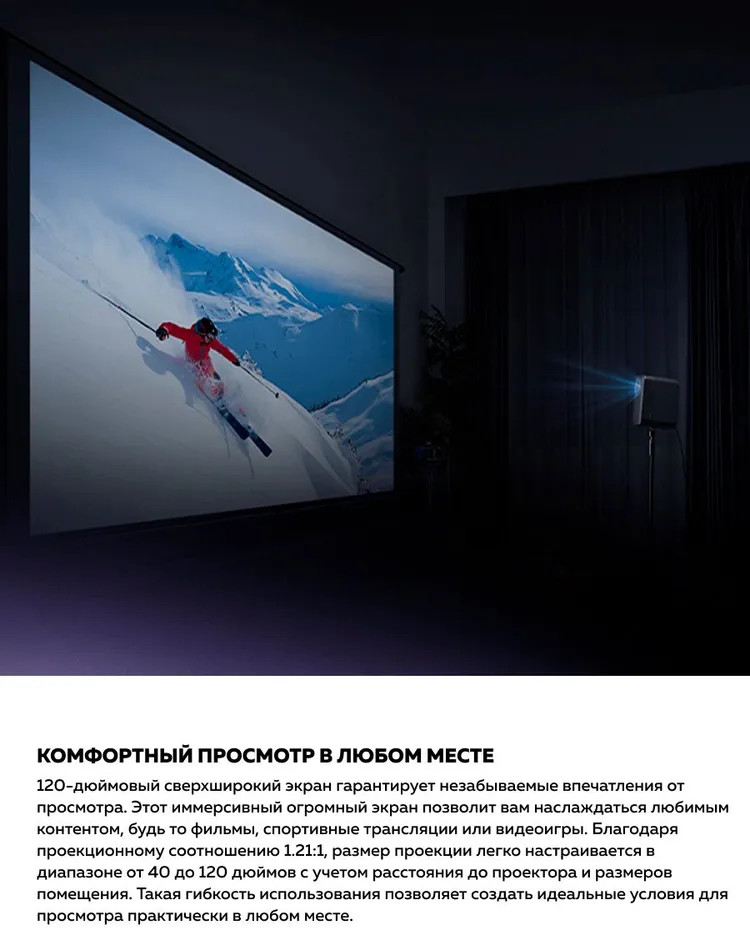 💳 Оплатить за товар можно при получении 🇰🇿 Есть бесплатная доставка по Казахстану от 1 дня 🎁 Копите бонусы с каждой покупки Полностью герметичный оптический механизм оснащен оптической линзой высокой четкости с превосходной светопропускаемостью, что позволяет проецировать более четкие изображения с высокой точностью цветопередачи, воспроизводя истинную художественную красоту фильмов. |