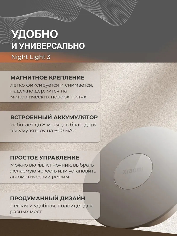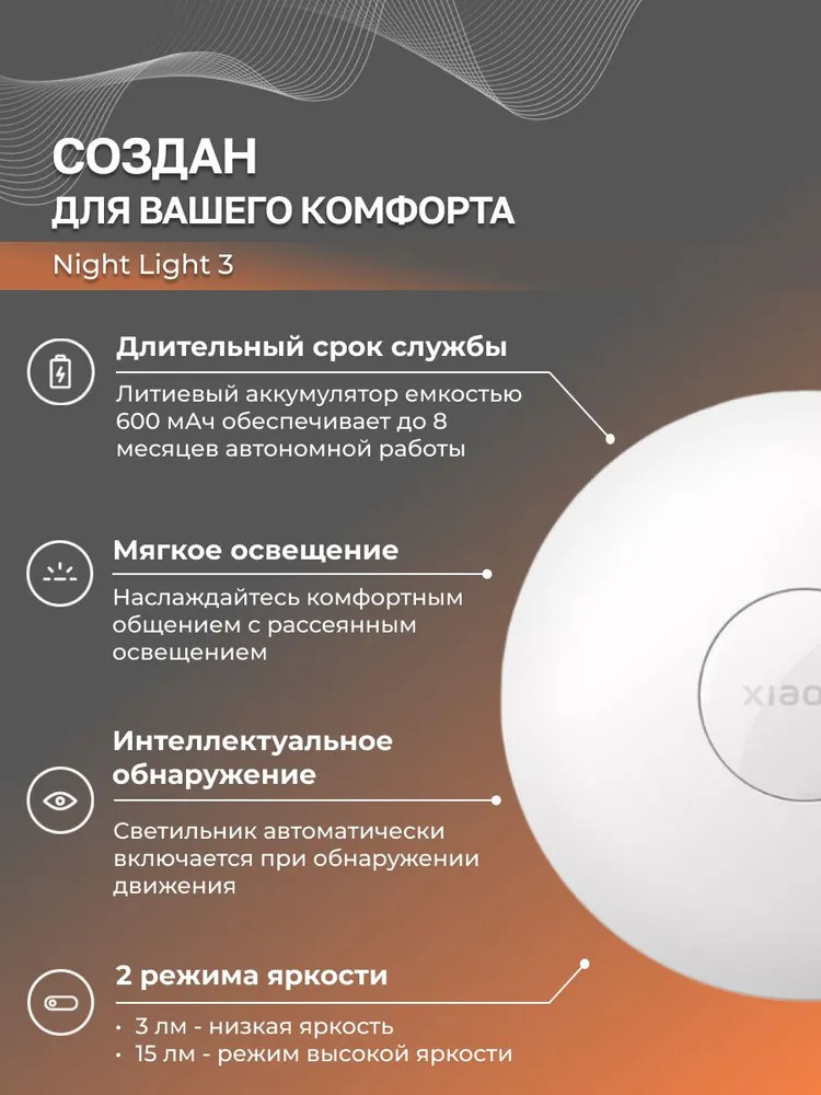 Компактный, классный, оригинальный с датчиком движения. Можно установить в любом месте. Экономит заряд аккумулятора.