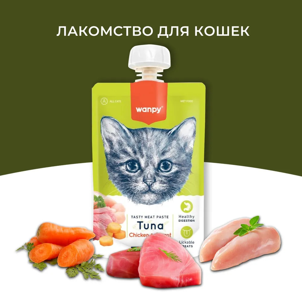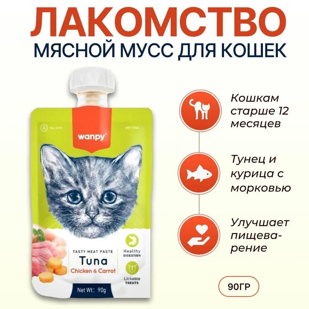 Wanpy Лакомство для кошек «Мясной мусс из тунца и курицы с морковью»