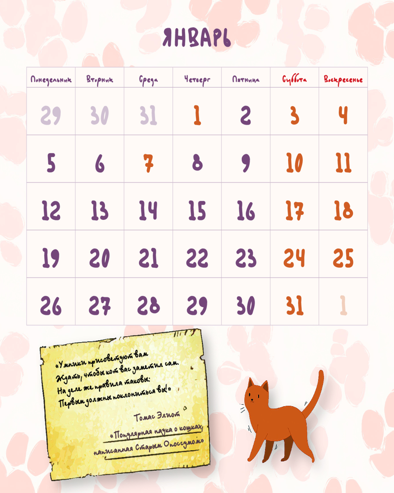 💳 Оплатить за товар можно при получении 🇰🇿 Есть бесплатная доставка по Казахстану от 1 дня 🎁 Копите бонусы с каждой покупки Серия: Календарь настенный на 2026 год Настенный перекидной календарь на 2026 год с иллюстрациями художницы Натальи Стрельцовой с милыми котиками и добрыми цитатами из классики мировой литературы: «Алиса в Стране чудес», «Мастер и Маргарита», «Руслан и Людмила». Внутри карманные календарики на 2026-2027 год, которые можно подарить друзьям и близким. |