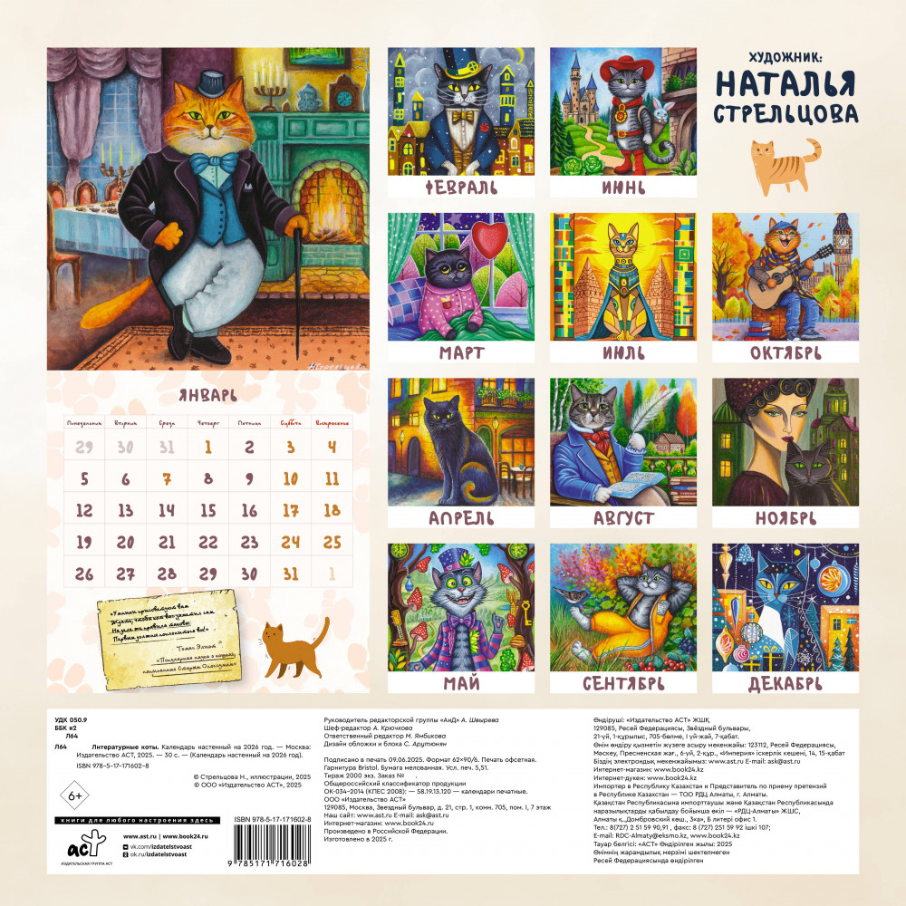 Календарь настенный на 2026 год «Литературные коты»+36