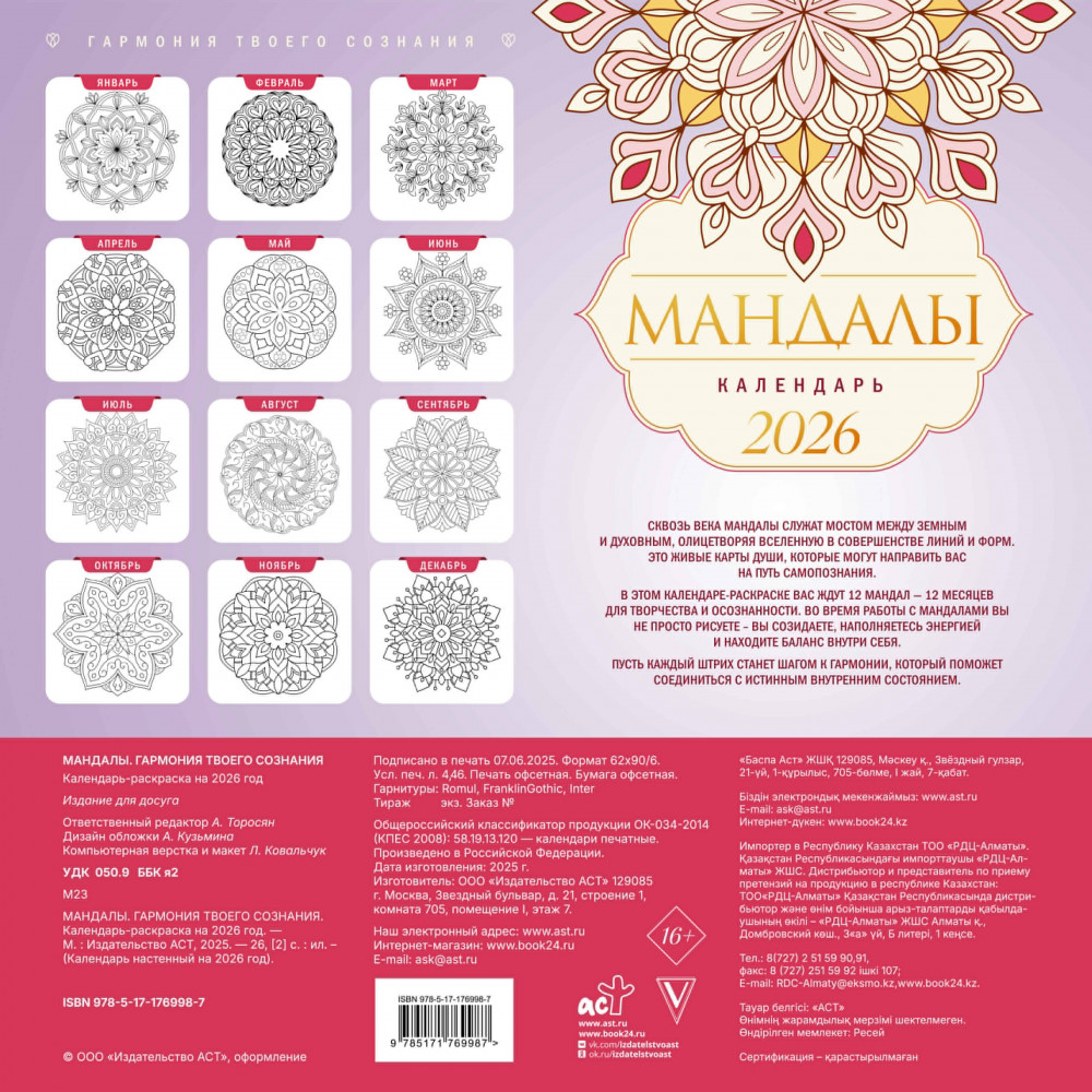 Календарь-раскраска на 2026 год «Мандалы. Гармония твоего сознания»-20% +73