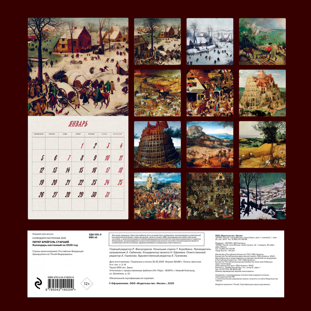Календарь настенный на 2026 год «Питер Брейгель старший»В данный момент этот товар отсутствует в продаже. Возможно, у нас найдется аналогичный или похожий товар здесь. Серия: Календари настенные 2026 (300×300) Практичный и прекрасно иллюстрированный календарь призван украсить интерьер вашего дома и наполнить его светом знаменитых шедевров мирового искусства. Прекрасные картины органично дополнят любой интерьер и помогут планировать время. В этом календаре представлены шедевры кисти Питера Брейгеля. |