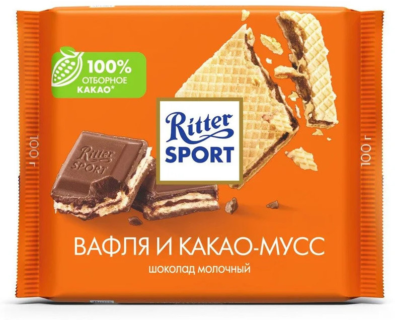 Ritter Sport Шоколад молочный «Вафля и какао-мусс»