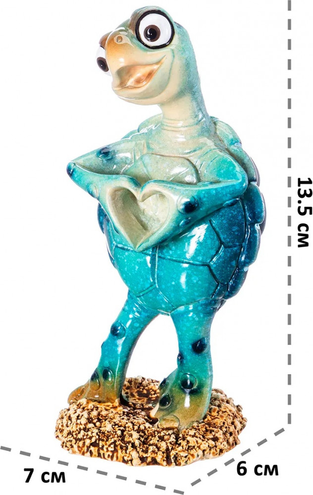 Привнесите эстетику в интерьер своей квартиры с помощью красивых мелочей! Смешная черепашка показывает сердечко, чтобы подарить позитивные эмоции всем вокруг. Она станет оригинальным элементом декора и принесёт в дом радость и уют. Настольная фигурка украсит интерьер гостиной или спальни и создаст тёплую атмосферу. Превратите вашу кухню или дачу в уютное место благодаря этому сувениру! Вы можете разместить игрушку на полке, столе или создать декоративную композицию вместе с другими украшениями на камине. Она поможет украсить ваше рабочее место в офисе и сделает кабинет уютнее! Не рекомендуется применять абразивные моющие средства. В коллекции бренда Элан Галерея представлено много товаров для дома, предметов декора и сувенирной продукции для создания уюта в любом пространстве.