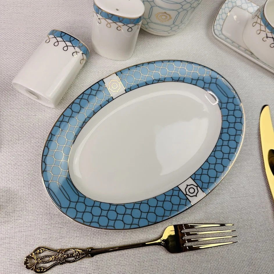 💳 Оплатить за товар можно при получении 🇰🇿 Есть бесплатная доставка по Казахстану от 1 дня 🎁 Копите бонусы с каждой покупки Серия: Тиффани Коллекция «Тиффани» изготовлена из легкого костяного фарфора. В декоре мы совместили классические и современные техники. Узор на лазурно-голубой деколи выполнен на одних изделиях золотом, на других белого цвета. Одни тарелки только с голубым узором, другие с голубой деколью на бортах. Эти комбинации делают коллекцию воздушной и легкой. Великолепное сочетание тонкого белоснежного костяного фарфора и лазурного декора. Коллекция состоит из предметов сервировки, чайных и кофейных сервизов. |