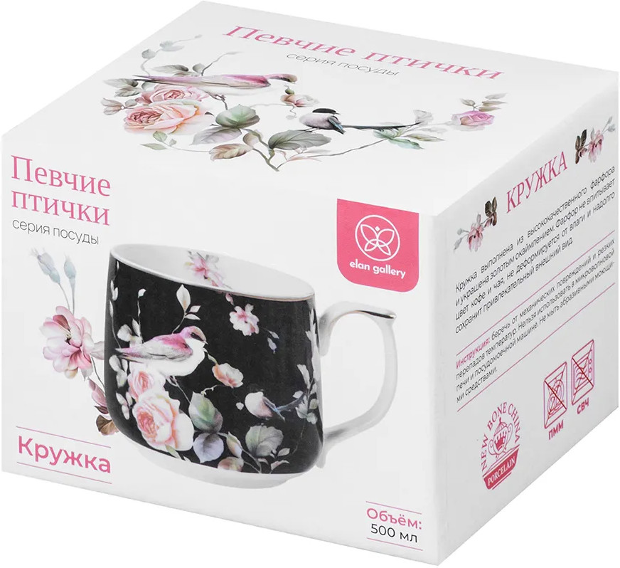 Elan Gallery Кружка «Певчие птички на черном»-25% +143