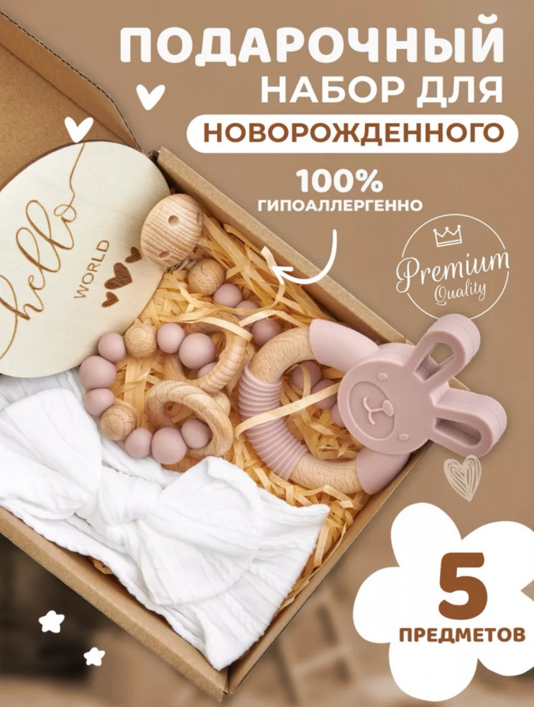 💳 Оплатить за товар можно при получении 🇰🇿 Есть бесплатная доставка по Казахстану 🎁 Копите бонусы с каждой покупки Подарочный набор для новорожденной малышки прекрасно подойдёт в качестве подарка на выписку из роддома или для фотосессии baby-born. Все предметы из набора изготовлены из высококачественных и безопасных материалов: хлопок, дерево, силикон. Набор упакован в подарочную крафтовую коробку. |