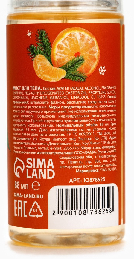 Ural lab Мист для тела парфюмированный с ароматом сливочного мандарина