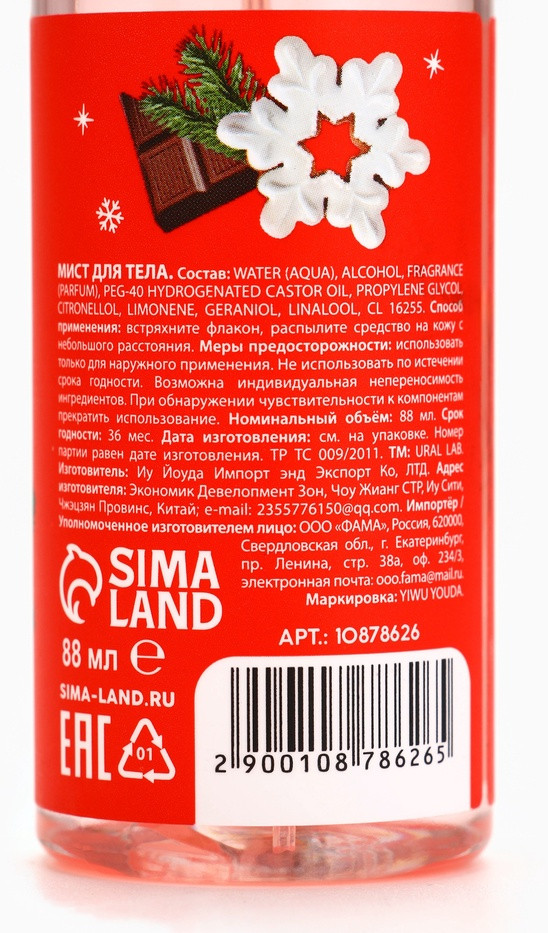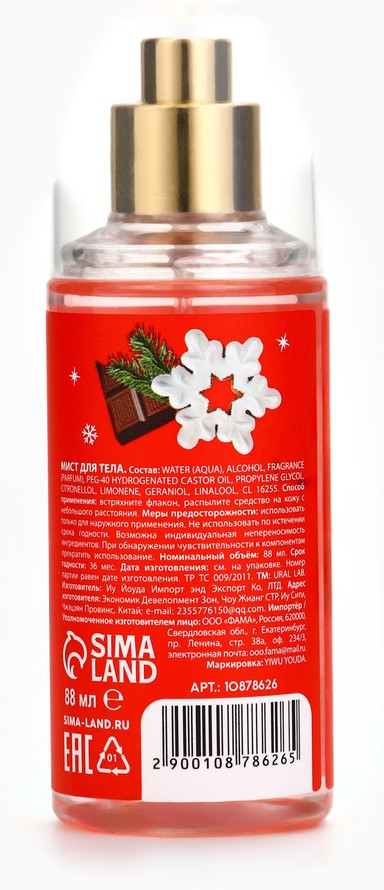 давно ищу шоколадный мист, в худшем случае я ожидала что-то карамельное или ванильное но это даже ОТДАЛЕННО не напоминает ничего шоколадного, запах резкий, такой химозно-кислый, не знаю как это еще описать. никогда в жизни не встречала мист/парфюм который НАСТОЛЬКО отличается от заявленного запаха. такое чувство что перепутали при розливе запахи, что ли 😭😭 запах напоминает что-то из детства, не могу понять что, то ли ароматизатор для игрушек, то ли леденцов-шипучек. нюхать можно ради ностальгии 😭