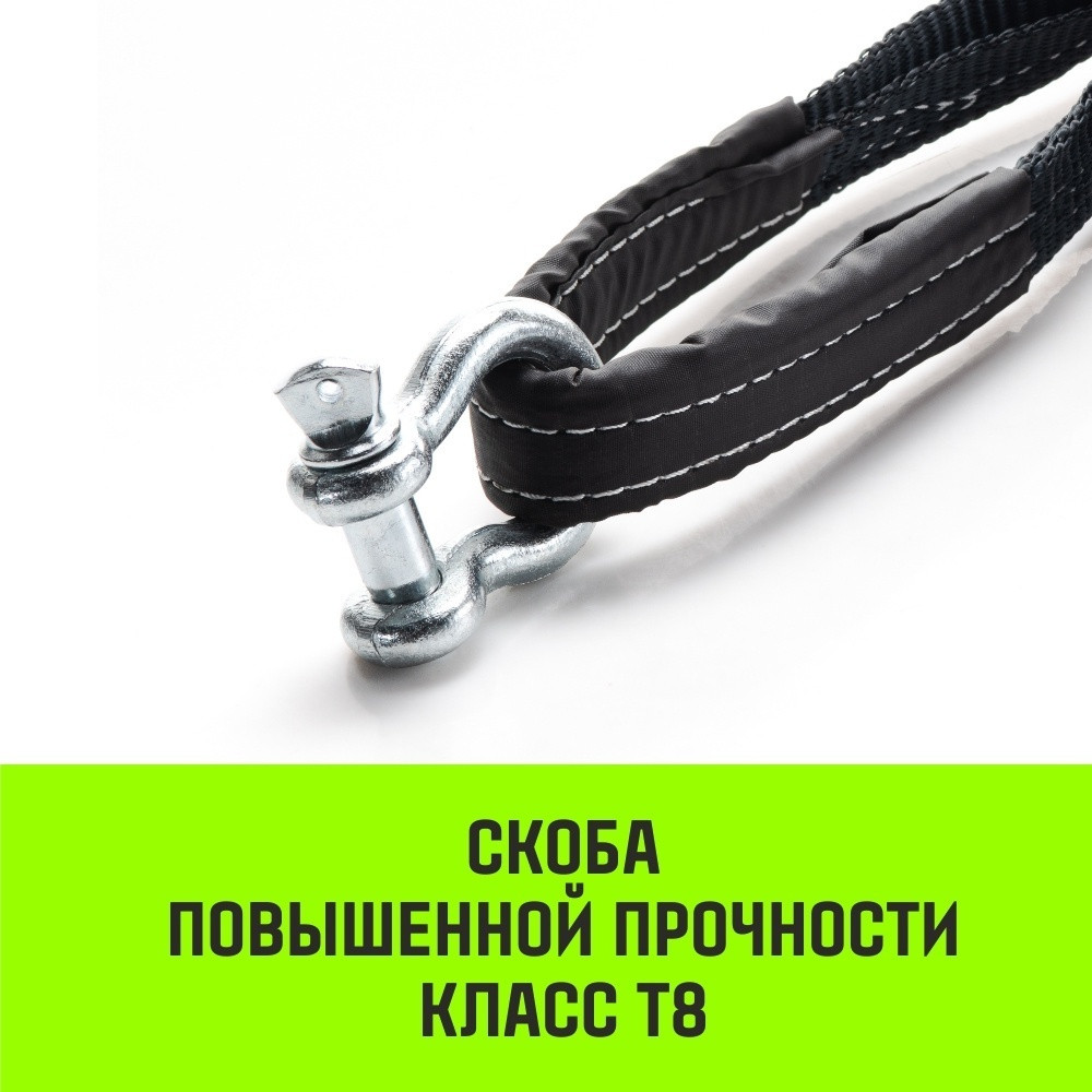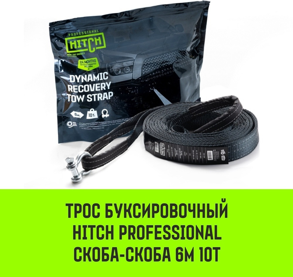 Буксировочный динамический трос HITCH prof лента, масса авто 3,3 т, разрывная 10 т, 6 м, 2 скобы SZ071511 идеален как для профессионального применения, так и для периодического использования и не займет много места в багажнике транспортного средства.