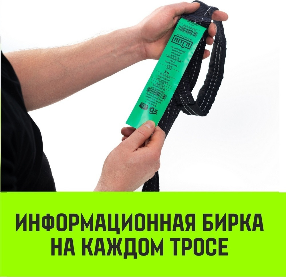 Омегообразные скобы, класса прочности Т8 используются в качестве концевых элементов буксира. Обладают надежностью и четырехкратным запасом прочности при небольших размерах и массе. Водоотталкивающая пропитка защищает буксировочный трос HITCH Professional от негативных воздействий влаги, перепадов температур и ультрафиолета. Автоматизированные линии кроя и сшивки ленты исключают брак на 99%.