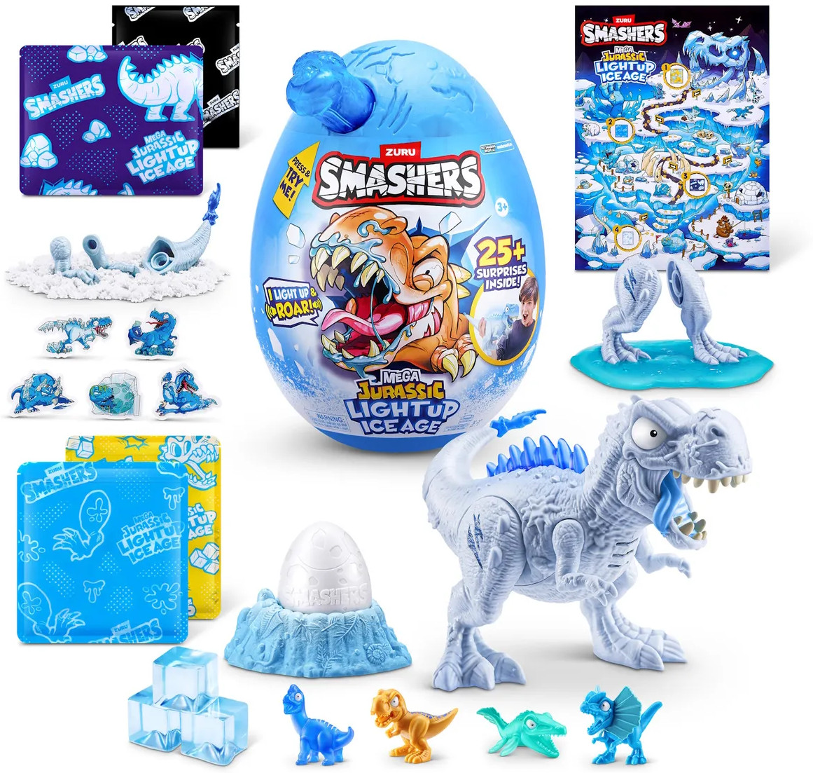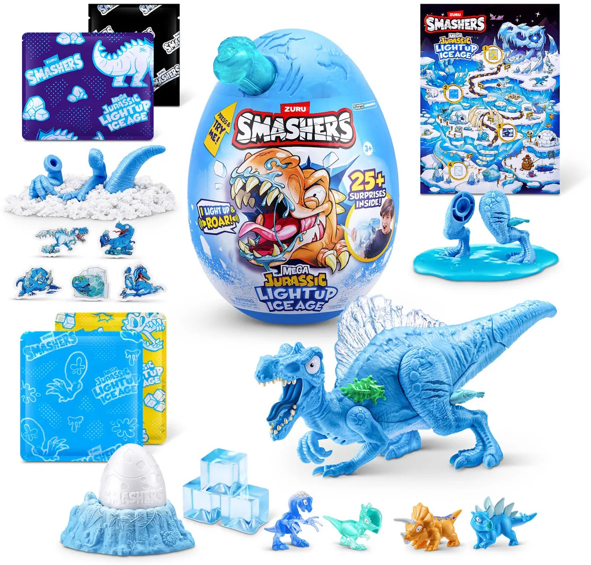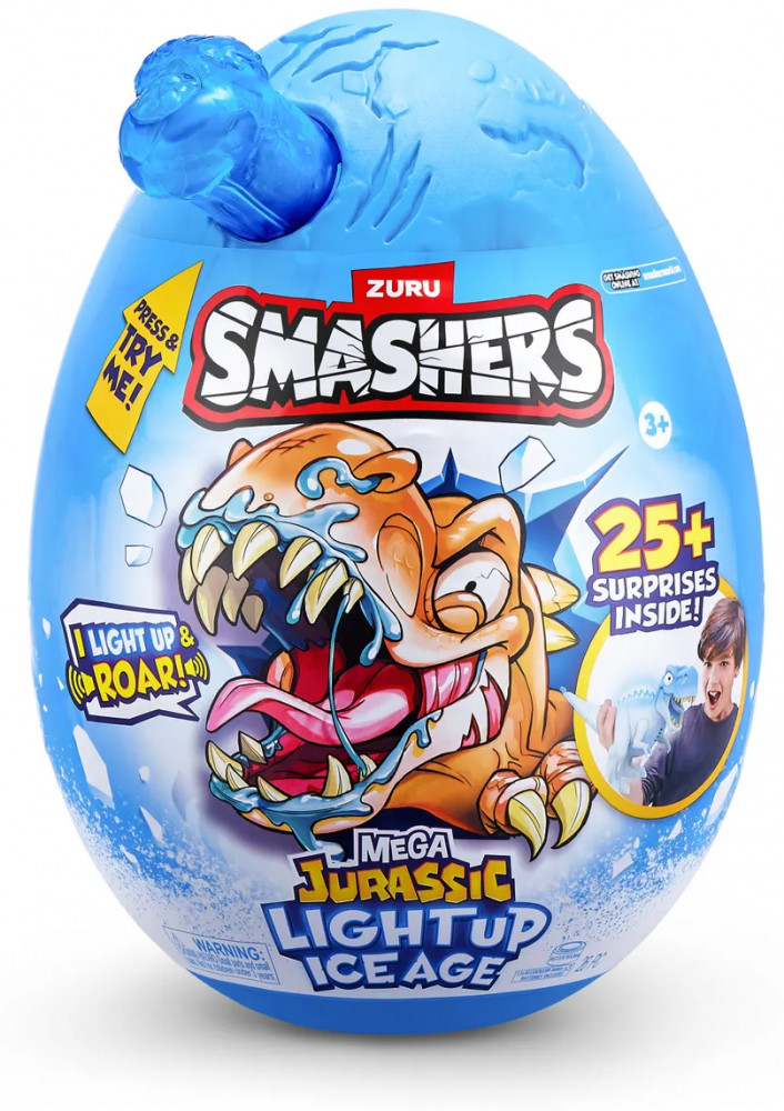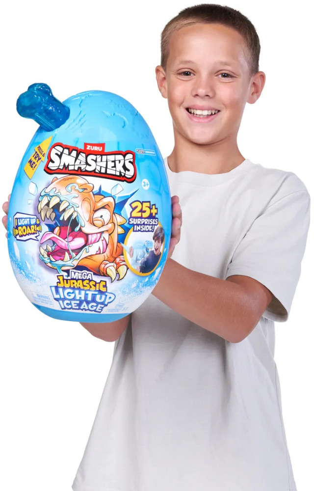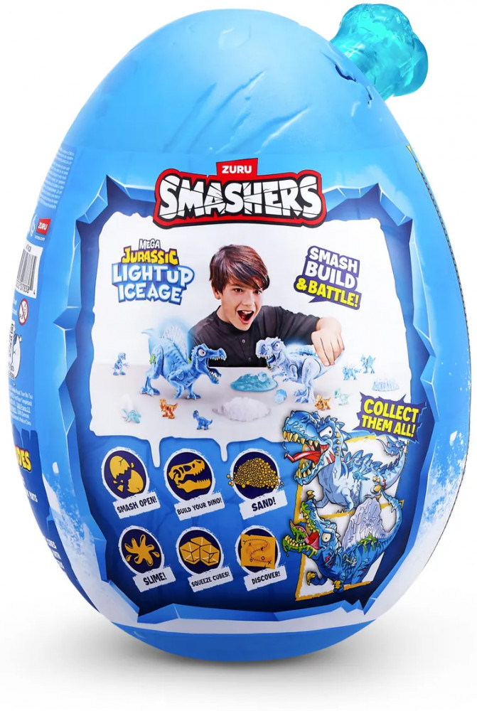 Открой доисторический мир с набором ZURU Smashers Mega Jurassic Light Up Ice Age! Разбей огромное яйцо, чтобы найти светящегося динозавра, слизь, детали для сборки, мини-фигурки и другие сюрпризы. Идеальный подарок для юных исследователей и поклонников динозавров.