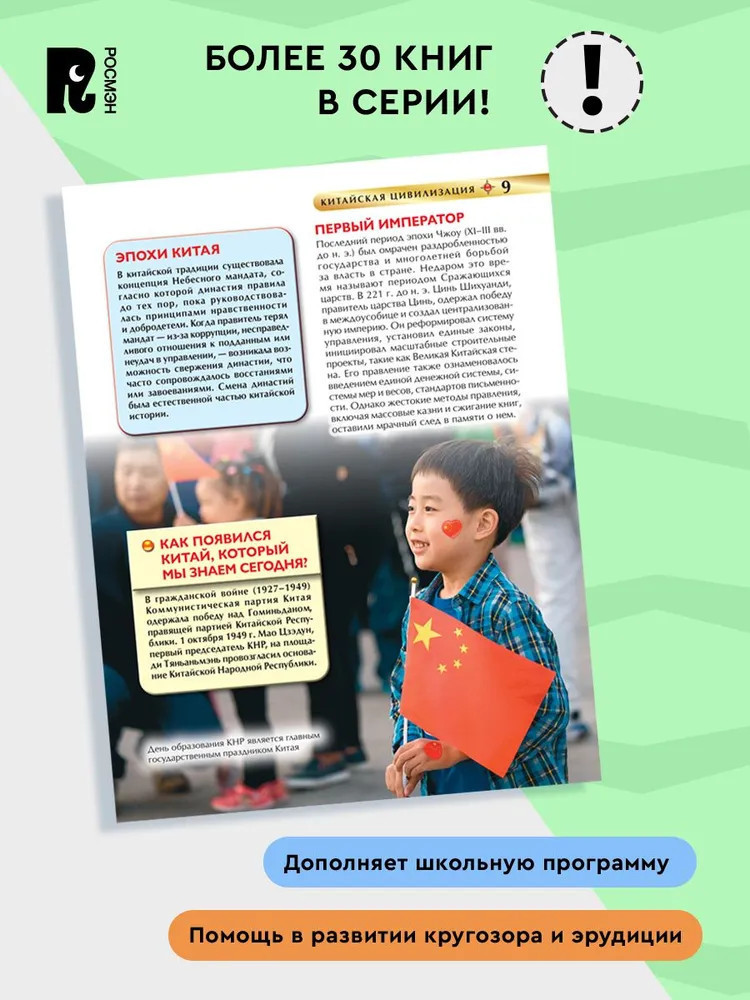 💳 Оплатить за товар можно при получении 🇰🇿 Есть бесплатная доставка по Казахстану от 1 дня 🎁 Копите бонусы с каждой покупки Серия: Детская энциклопедия Эта увлекательная, красочно иллюстрированная энциклопедия познакомит ребенка с наследием Древнего Китая и современной технологичной страной, которой она является сегодня. Книга станет отличным подарком мальчику и девочке и полезным помощником в развитии интеллекта и эрудиции младших школьников. |