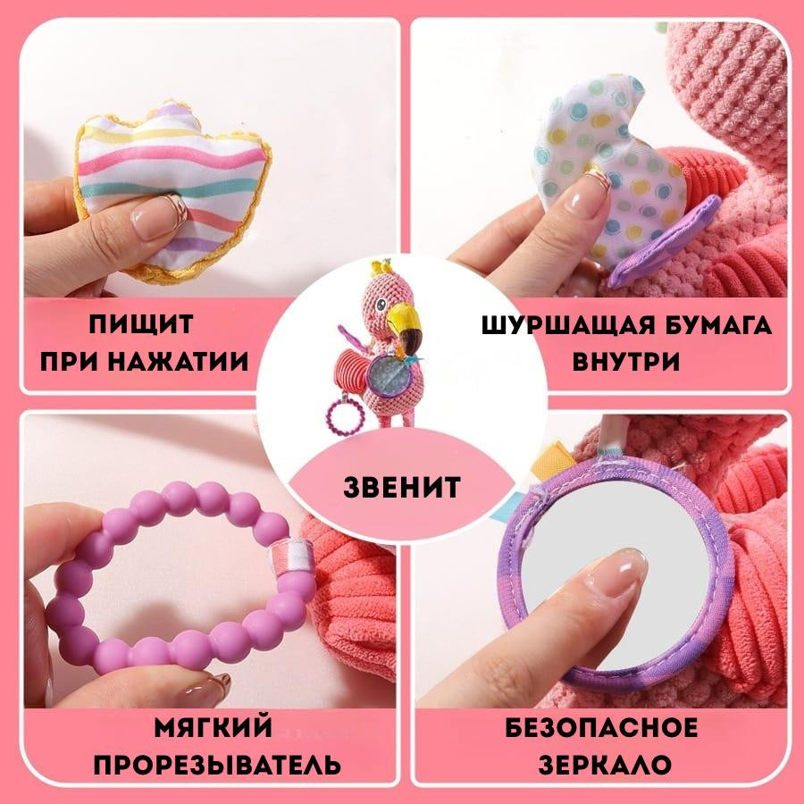 💳 Оплатить за товар можно при получении 🇰🇿 Есть бесплатная доставка по Казахстану от 1 дня 🎁 Копите бонусы с каждой покупки Мягкая игрушка — погремушка с прорезывателем не только развлекает, но и развивает малыша с самого рождения. Изготовлена из безопасных и гиппоаллергенных материалов. Не содержит вредных веществ и подходит для самых маленьких. |