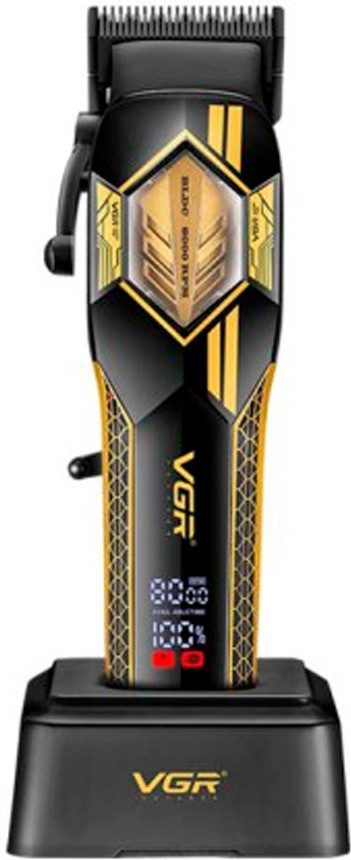 VGR V-119 — это мощная и современная машинка для стрижки с ярким дизайном и цифровым дисплеем. Благодаря широкому лезвию и регулировке длины среза, она подходит для профессионального и домашнего использования. Устройство оборудовано интеллектуальным экраном, показывающим заряд аккумулятора, скорость и время работы.