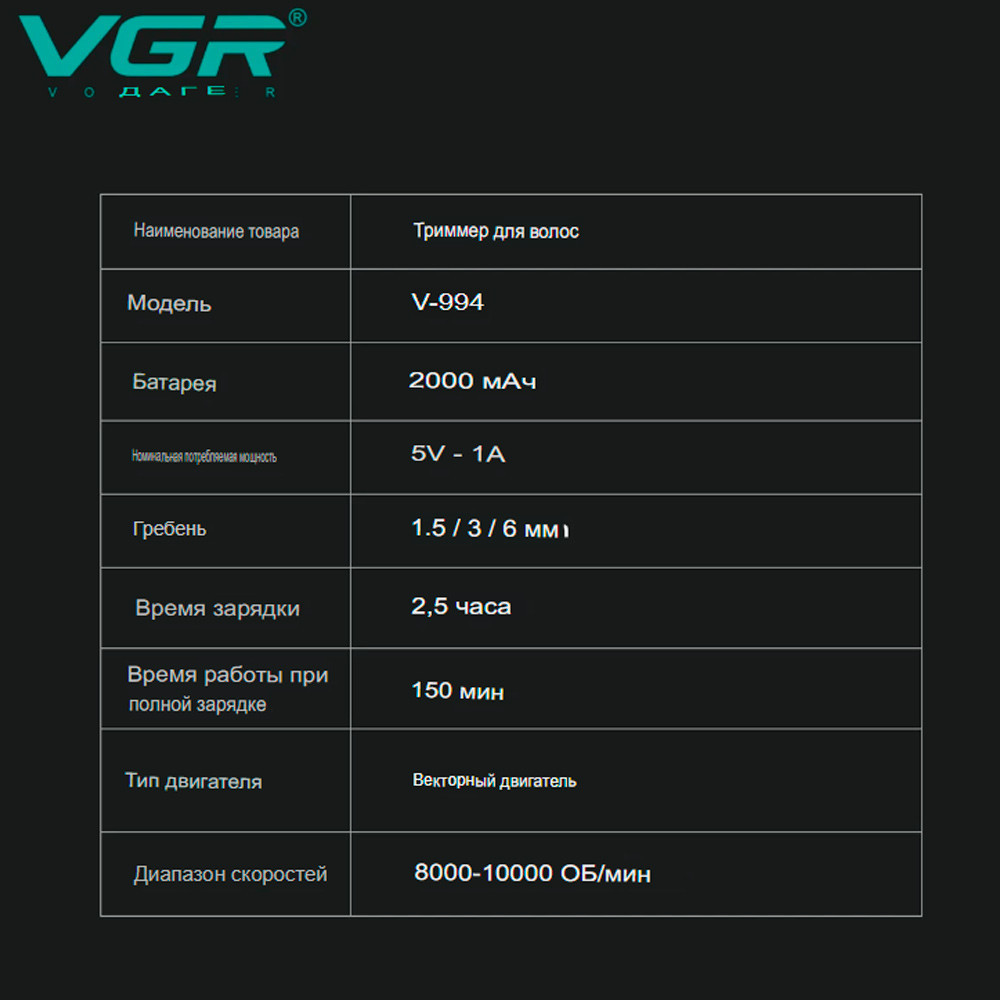 💳 Оплатить за товар можно при получении 🇰🇿 Есть бесплатная доставка по Казахстану от 1 дня 🎁 Копите бонусы с каждой покупки Испытайте высокопроизводительный уход за волосами с профессиональным триммером VGR V-994, разработанным как для салонов красоты, так и для мужской личной гигиены. Этот триммер с металлическим корпусом и лезвиями с DLC-покрытием обеспечивает точную стрижку и долговечность. Векторный двигатель с интеллектуальной сменой скорости работает со скоростью 8000–10000 об/мин, обеспечивая высокую производительность для каждой стрижки. |