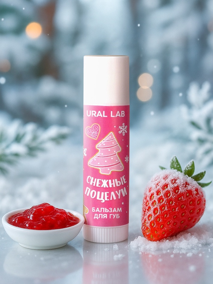 Ural lab Бальзам для губ с ароматом клубничного джема «Снежные поцелуи»