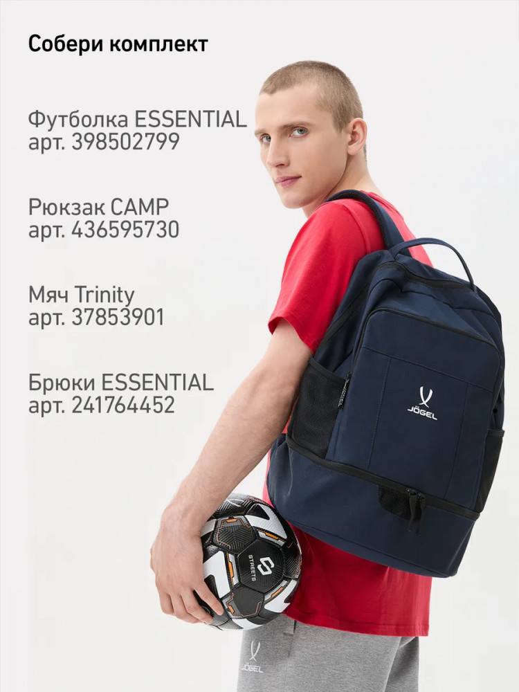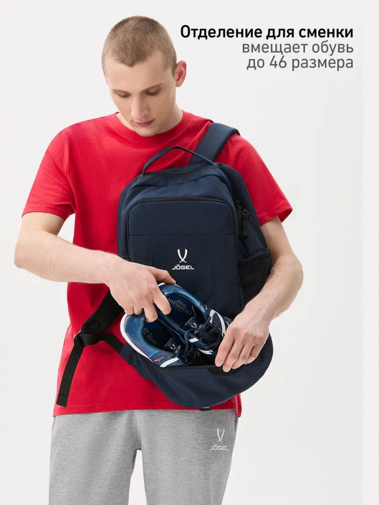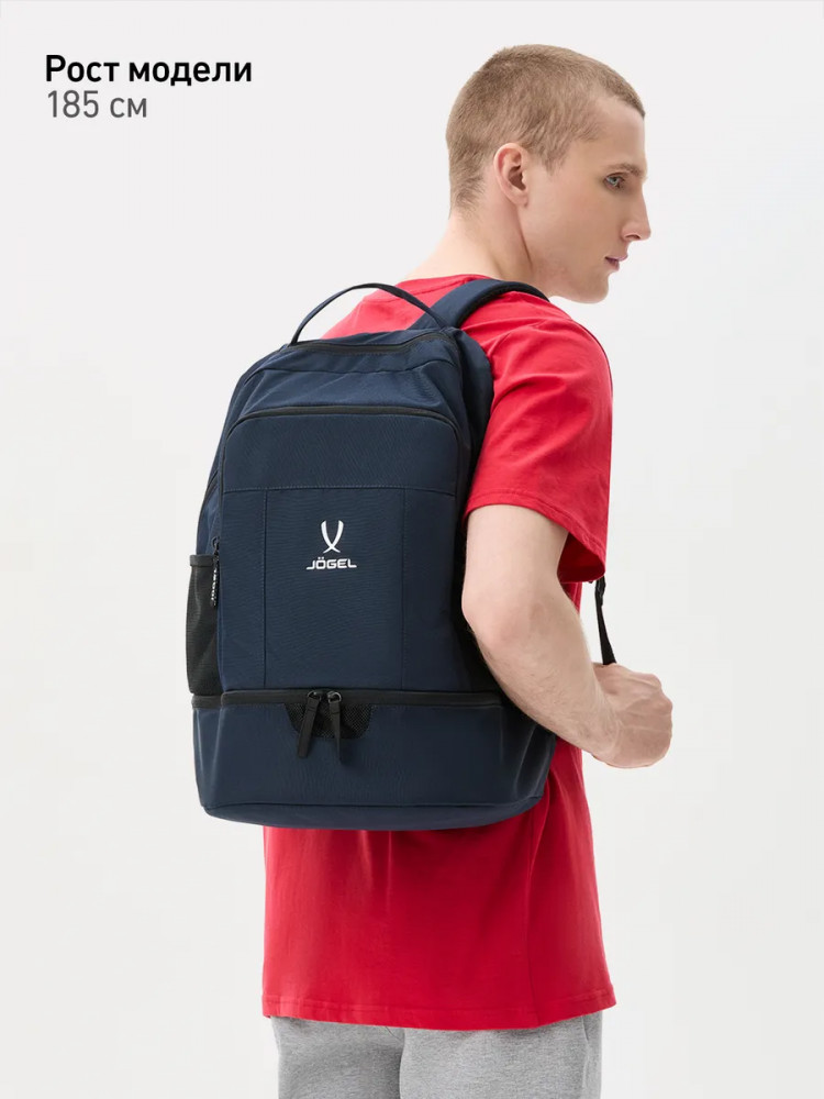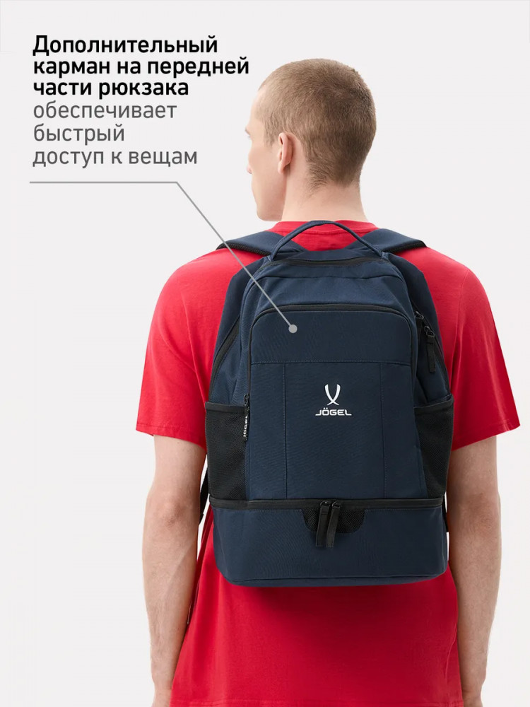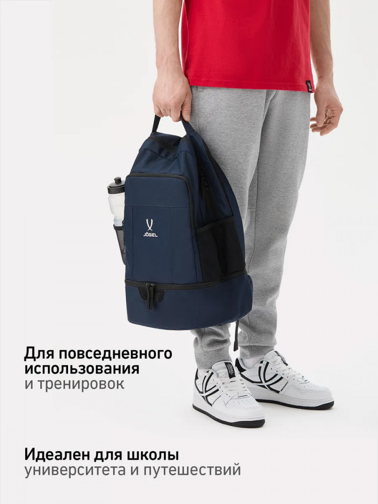 Рюкзак Jögel Camp Double Bottom 2.0 — это идеальный выбор для активных людей, ценящих комфорт и функциональность в каждой детали. Легкий и удобный спортивный рюкзак оснащен всем необходимым для повседневного использования и тренировок. Анатомическая спинка из сетки обеспечивает отличную вентиляцию и комфорт даже при длительном ношении. Мягкие регулируемые плечевые лямки позволяют подстроить посадку под индивидуальные особенности. В модели предусмотрен фронтальный карман на молнии для быстрого доступа к мелочам, а также внутренний карман на молнии для ценных вещей. Два боковых сетчатых кармана отлично подходят для бутылок с водой. Особое внимание заслуживает нижний отсек для обуви с сетчатой вставкой — он отделяет грязную или влажную обувь от остального содержимого рюкзака и обеспечивает необходимую вентиляцию.