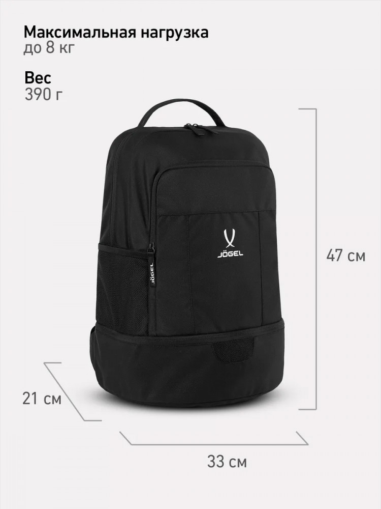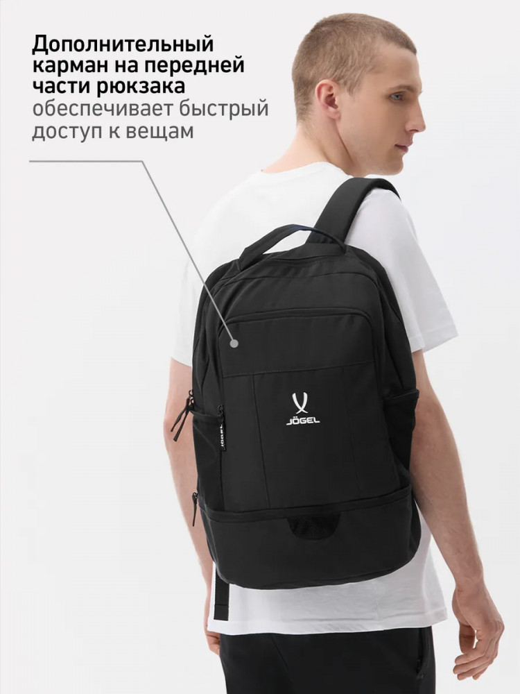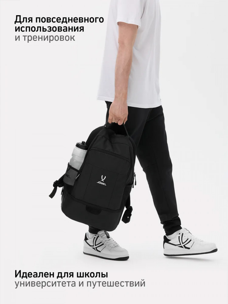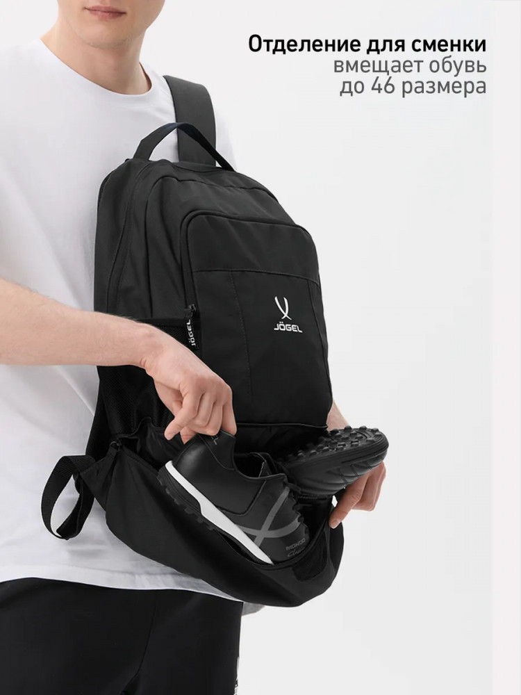 Рюкзак Jögel Camp Double Bottom 2.0 — это идеальный выбор для активных людей, ценящих комфорт и функциональность в каждой детали. Легкий и удобный спортивный рюкзак оснащен всем необходимым для повседневного использования и тренировок. Анатомическая спинка из сетки обеспечивает отличную вентиляцию и комфорт даже при длительном ношении. Мягкие регулируемые плечевые лямки позволяют подстроить посадку под индивидуальные особенности. В модели предусмотрен фронтальный карман на молнии для быстрого доступа к мелочам, а также внутренний карман на молнии для ценных вещей. Два боковых сетчатых кармана отлично подходят для бутылок с водой. Особое внимание заслуживает нижний отсек для обуви с сетчатой вставкой — он отделяет грязную или влажную обувь от остального содержимого рюкзака и обеспечивает необходимую вентиляцию.