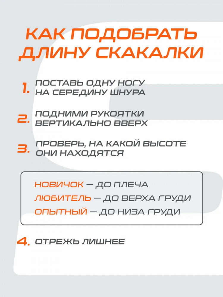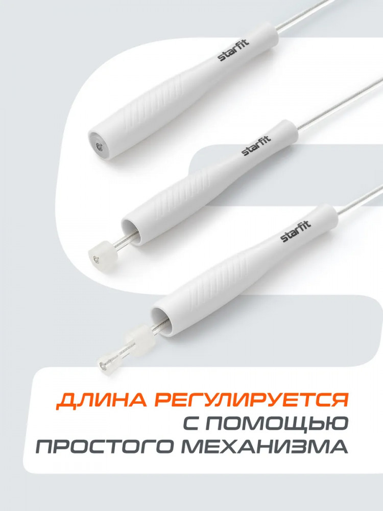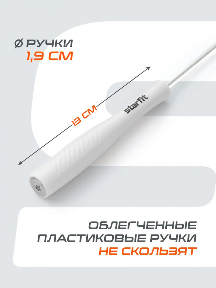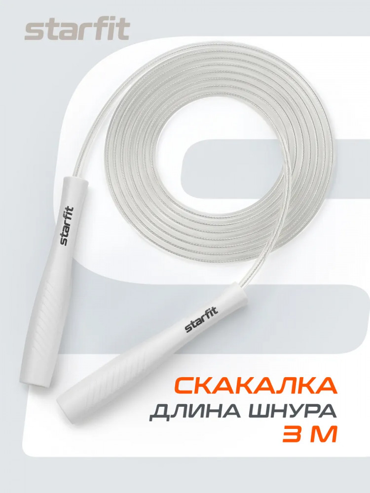 Скакалка RP-501 бренда Starfit — многофункциональный спортивный инвентарь для фитнеса дома или на улице. Она комфортна в использовании, легкие ручки с эргономичным хватом надежно фиксируются кистью, а пластиковое покрытие позволяет рукам не скользить во время тренировки. Скакалка регулируется по длине и сделана из прочного армированного шнура с ПВХ-покрытием. Этот гибкий материал отличается высокой износостойкостью и увеличивает срок эксплуатации изделия. Скакалка имеет длину 3 метра, такой размер рекомендован для взрослых с ростом не выше 180 см.