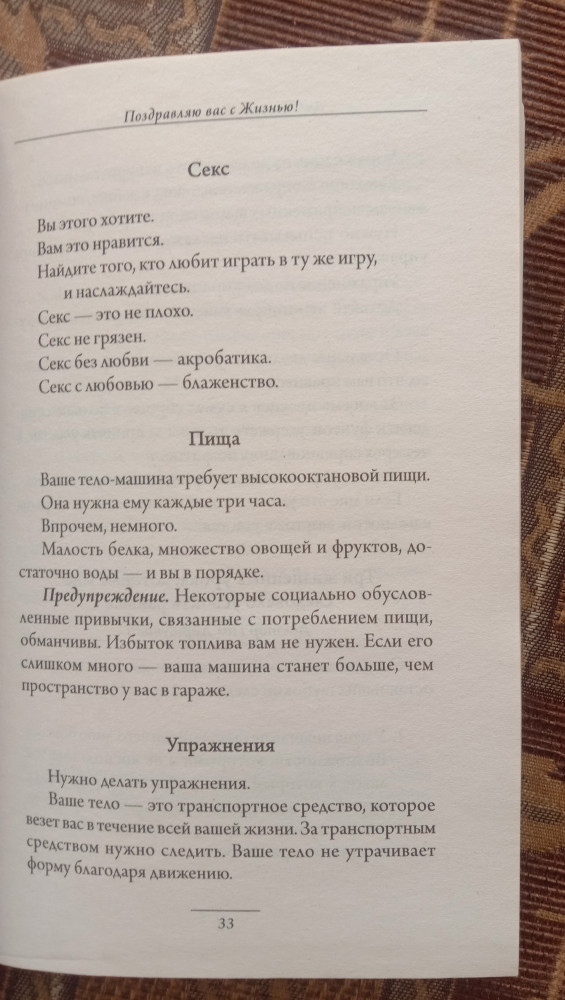 Шикарная книга, которую советую прочесть каждому, универсальные советы, как жить. Хочется подарить эту книгу всем своим знакомым. И спасибо за прекрасный сервис и доставку.