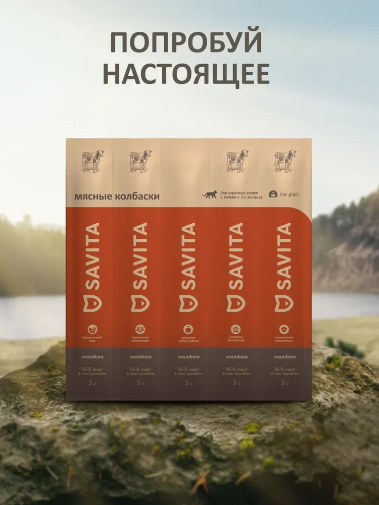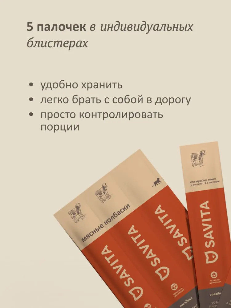 Savita Колбаски для кошек и котят мясные «Говядина»