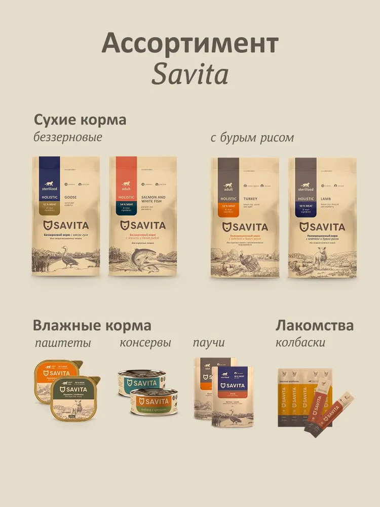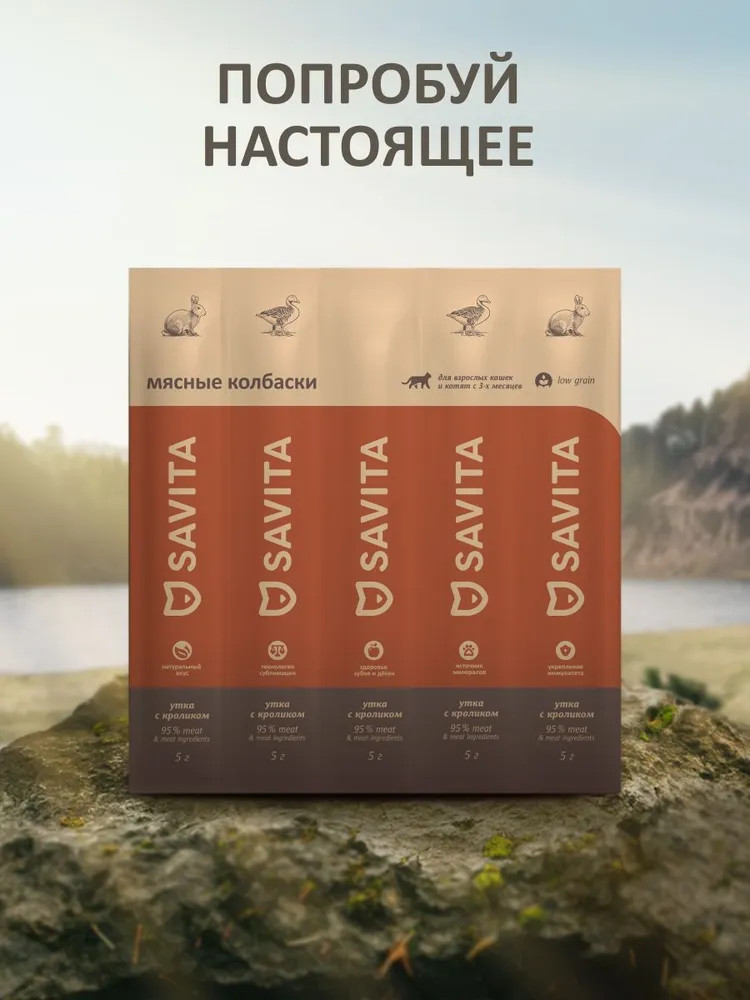 Savita Колбаски для кошек и котят мясные «Утка с кроликом»