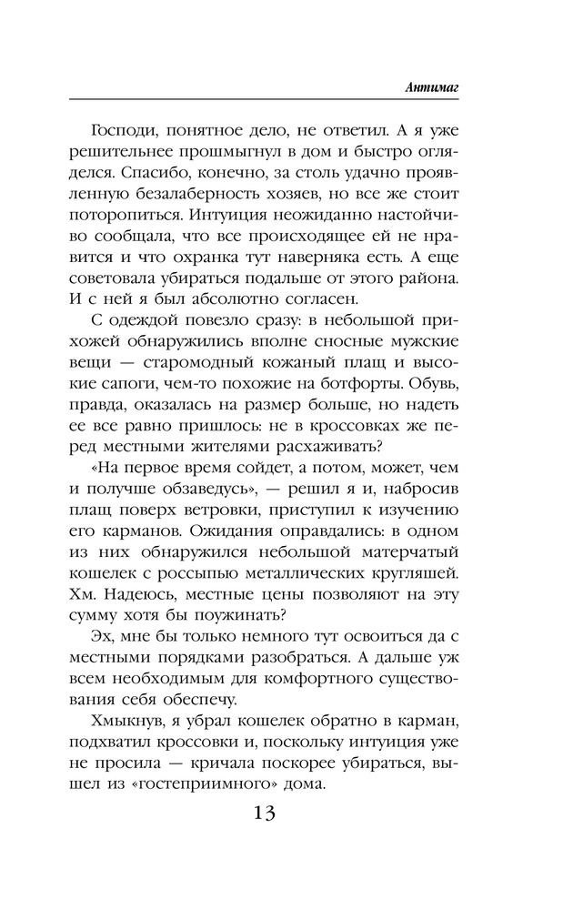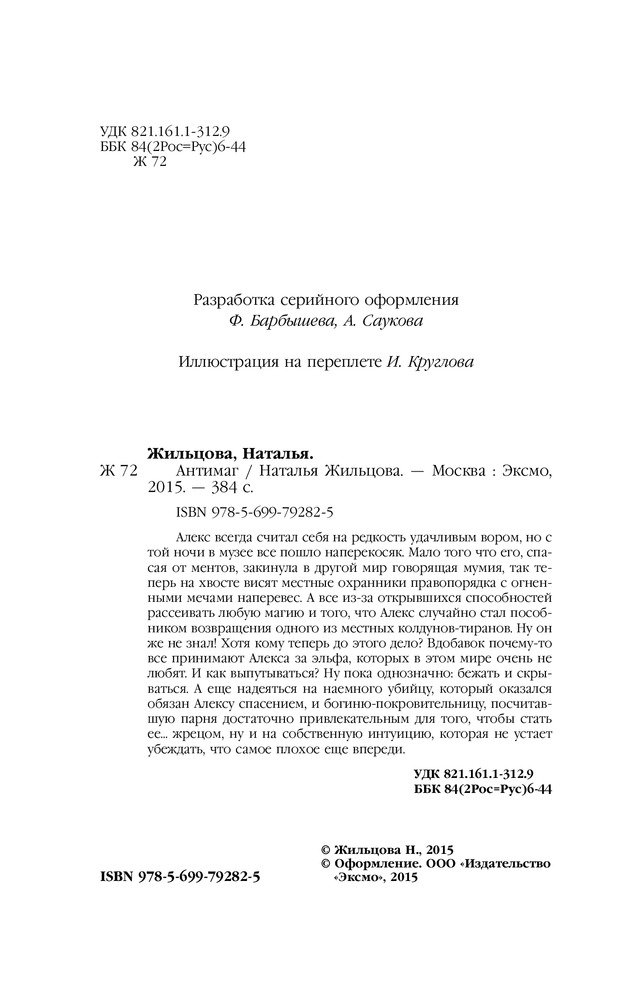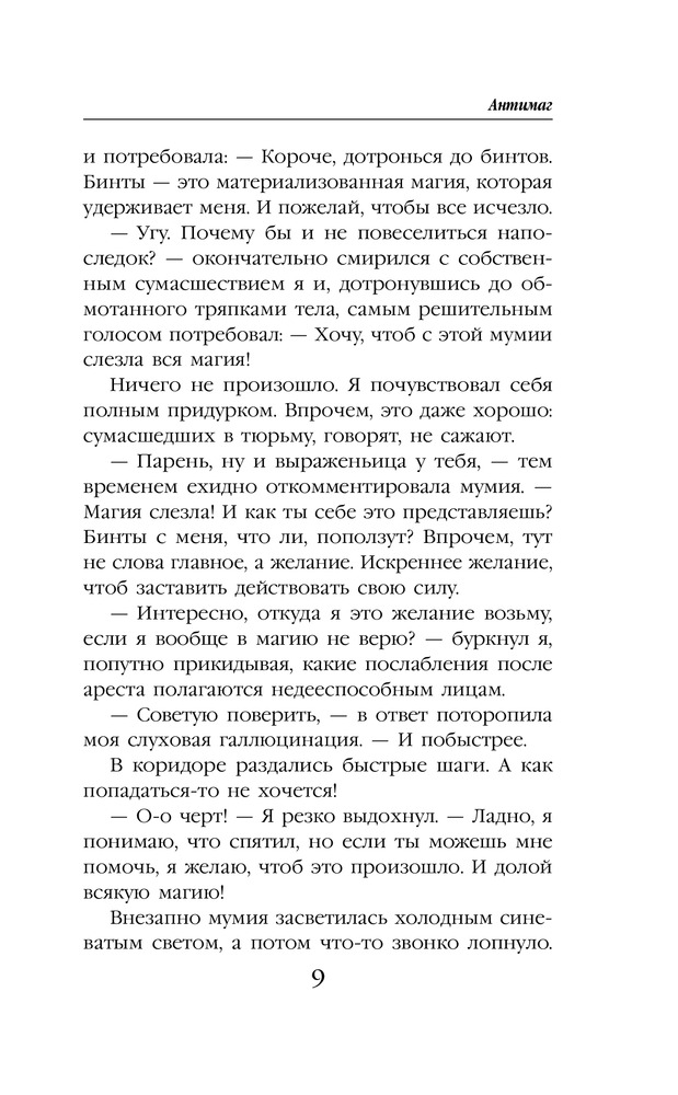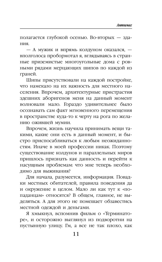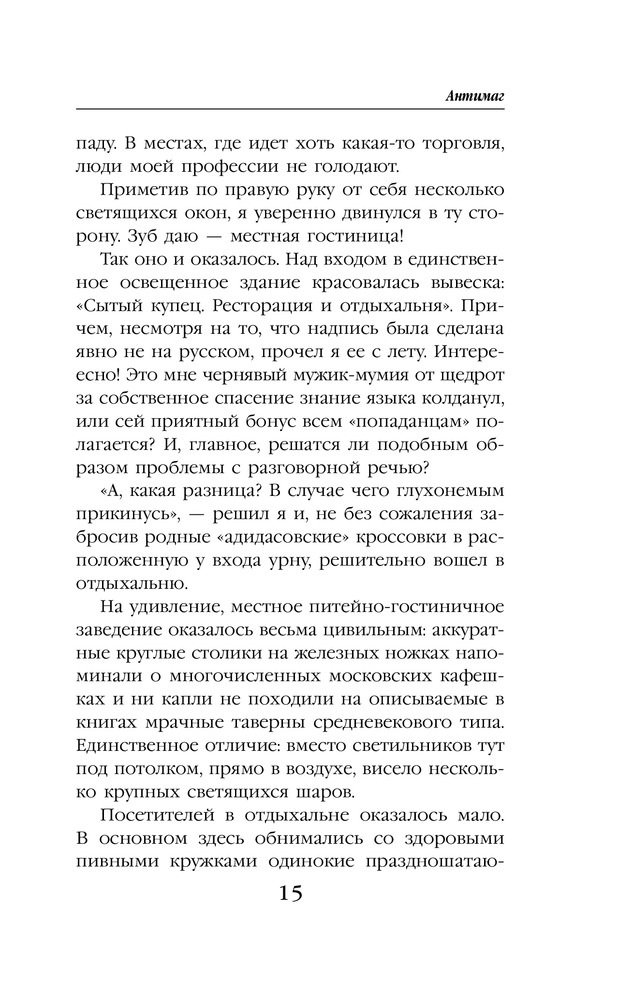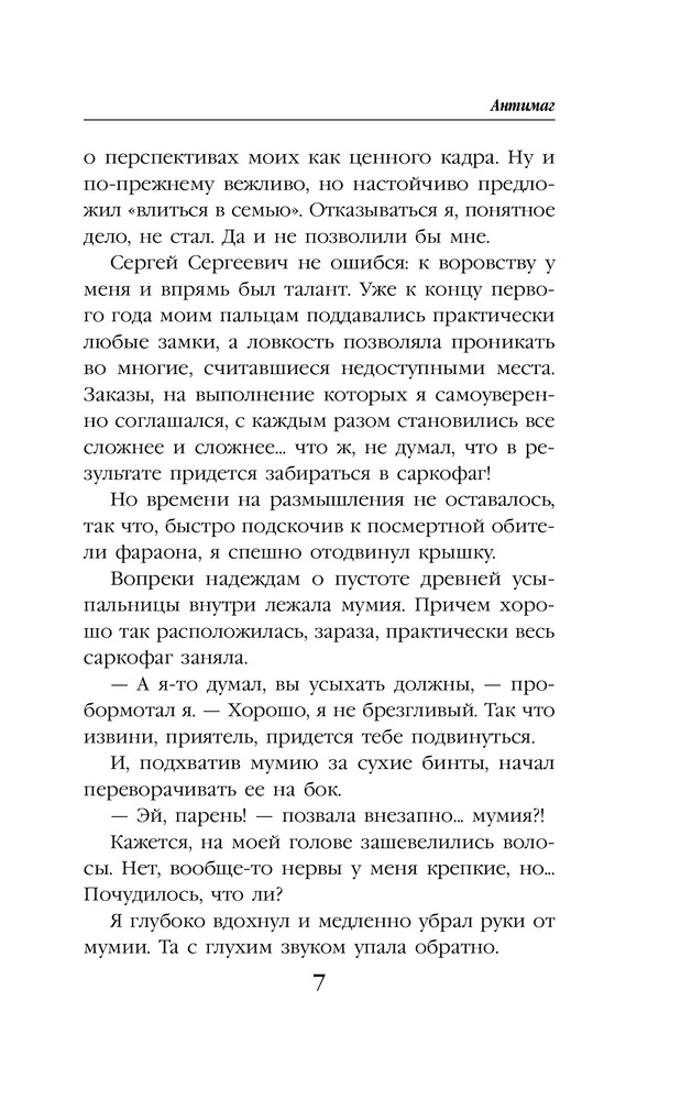 АнтимагВ данный момент этот товар отсутствует в продаже. Возможно, у нас найдется аналогичный или похожий товар здесь. Серия: Колдовские миры Алекс всегда считал себя на редкость удачливым вором, но с той ночи в музее все пошло наперекосяк. Мало того, что его, спасая от ментов, закинула в другой мир говорящая мумия, так теперь на хвосте висят местные охранники правопорядка с огненными мечами наперевес. А все из-за открывшихся способностей рассеивать любую магию и того, что Алекс случайно стал пособником возвращения одного из местных колдунов-тиранов. Ну он же не знал! Хотя кому теперь до этого дело? Вдобавок, почему-то все принимают Алекса за эльфа, которых в этом мире очень не любят. И как выпутываться? Ну пока однозначно бежать и скрываться. А еще надеяться на наемного убийцу, который оказался обязан Алексу спасением, и богиню-покровительницу, посчитавшую парня достаточно привлекательным для того, чтобы стать ее жрецом, ну и на собственную интуицию, которая не устает убеждать, что самое плохое еще впереди. |